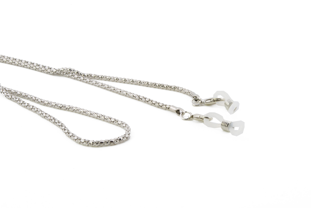 Unisex αλυσίδα γυαλιών σε ασημί χρώμα από ανοξείδωτο ατσάλι κατάλληλο για καθημερινή χρήση. Ταιριάζει σε όλους τους τύπους γυαλιών, ηλίου και οράσεως.