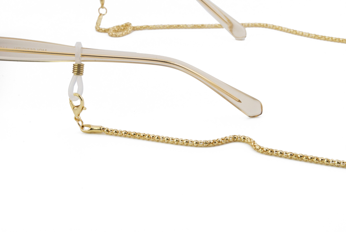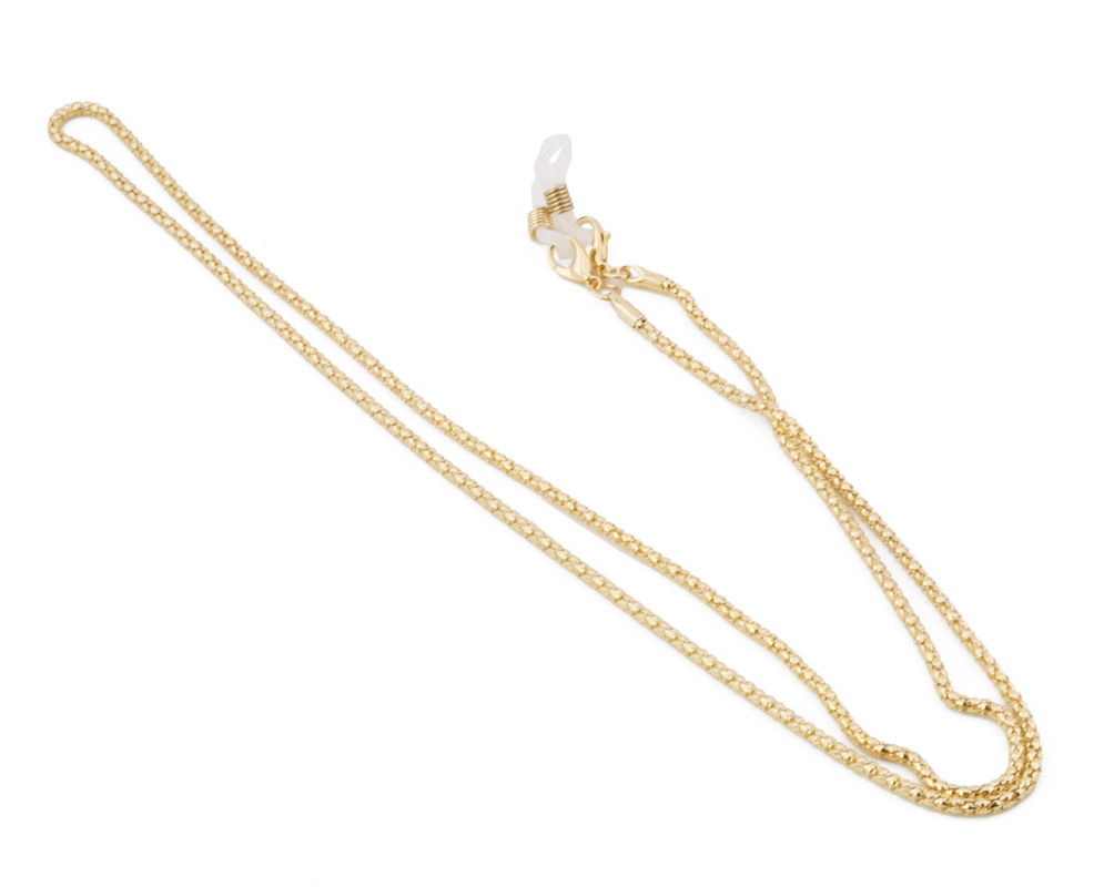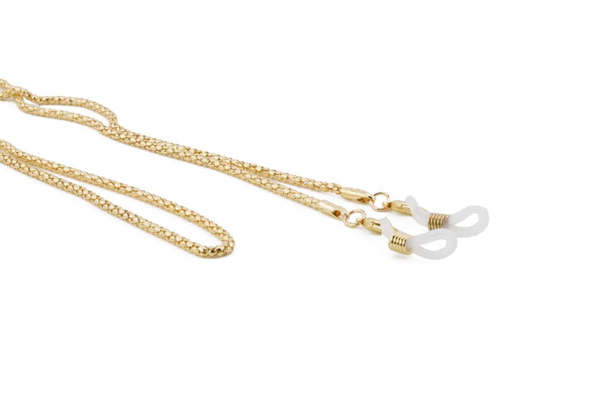 Unisex αλυσίδα γυαλιών σε χρυσό χρώμα από ανοξείδωτο ατσάλι κατάλληλο για καθημερινή χρήση. Ταιριάζει σε όλους τους τύπους γυαλιών, ηλίου και οράσεως.