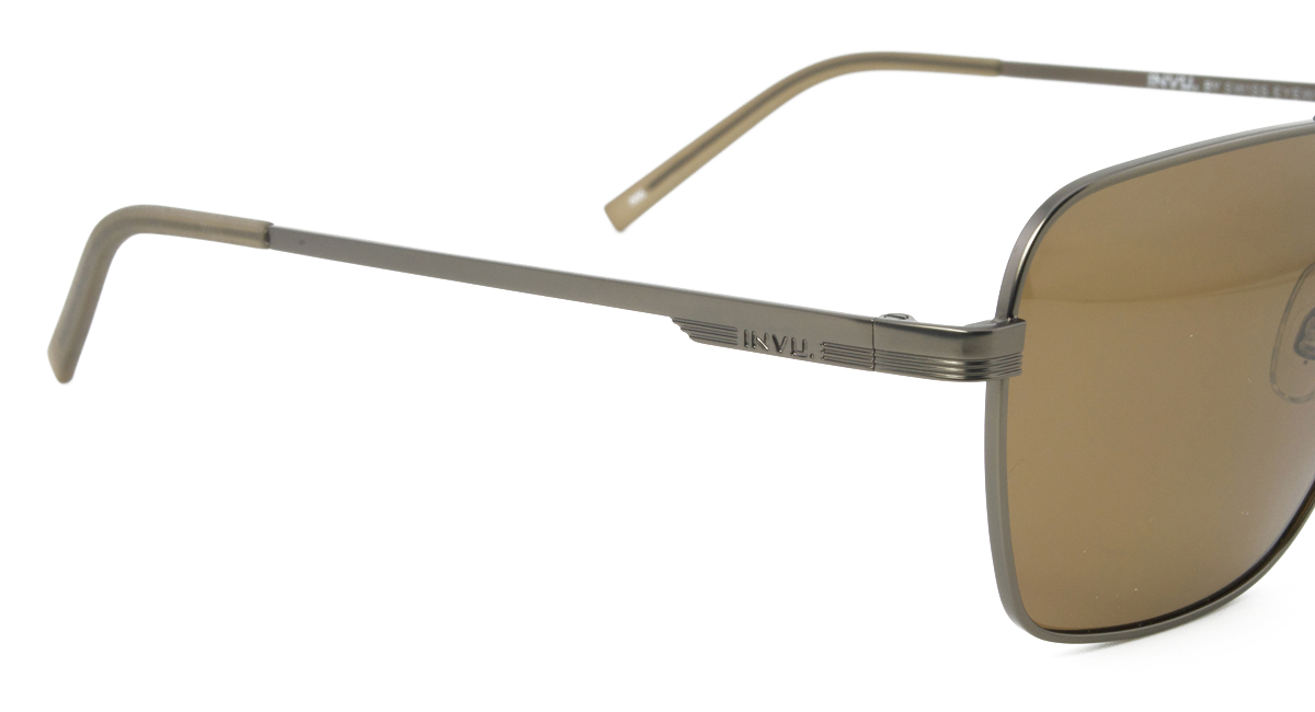 Μεταλλικός αντρικός ματ σκούρος γκρι ελαφρύς σκελετός σε τετράγωνο aviator σχήμα και κλασικό στιλ με σκούρους καφέ πολωτικούς φακούς.