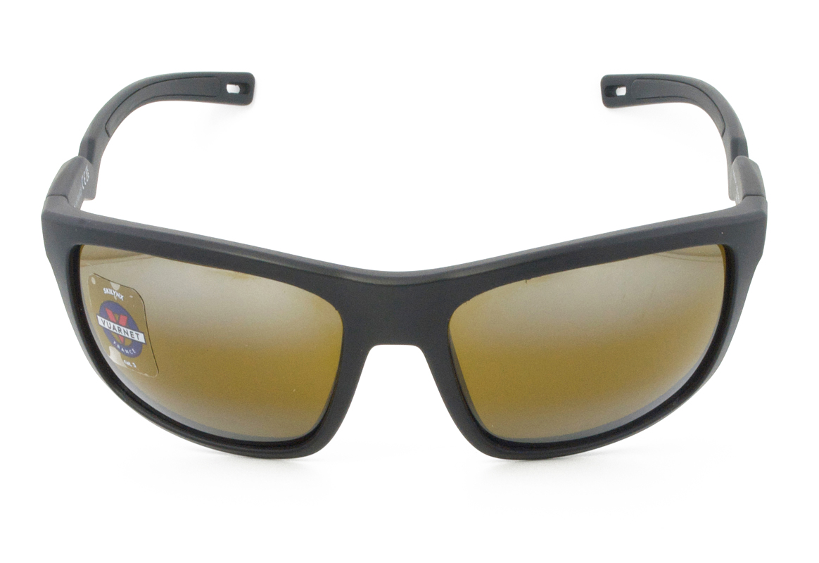 Κοκάλινος αντρικός ματ μαύρος σκελετός σε σχήμα μακρόστενο και αθλητικό στιλ με σκούρους καφέ UV400 Cat.3 κρυστάλλινους και ελαφρύ ασημί καθρέπτη φακούς.