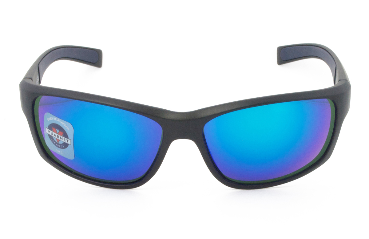 Κοκάλινος αντρικός ματ μαύρος σκελετός σε σχήμα μακρόστενο και αθλητικό στιλ με σκούρους πράσινους UV400 Cat.3 κρυστάλλινους και μπλε καθρέπτη φακούς.