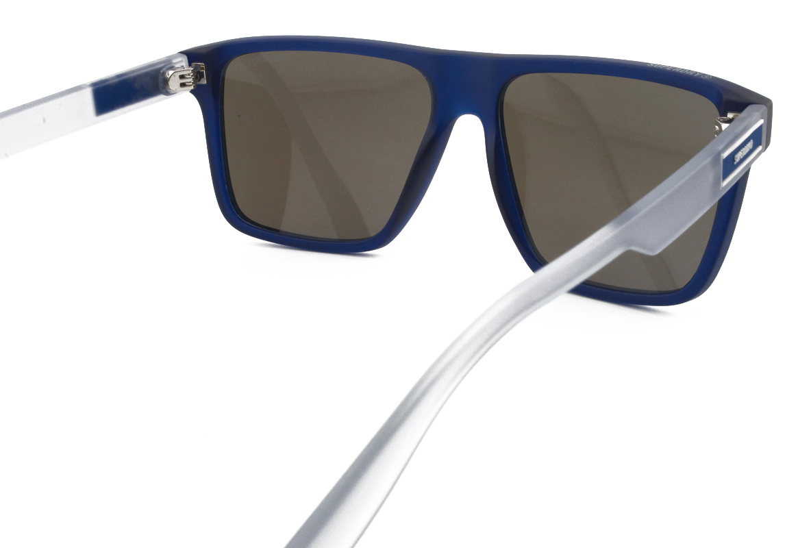 Κοκάλινος αντρικός ματ σκούρος μπλε-λευκός ελαφρύς σκελετός σε σχήμα τετράγωνο και αθλητικό στιλ με σκούρους γκρι UV400 και μπλε καθρέπτη φακούς.