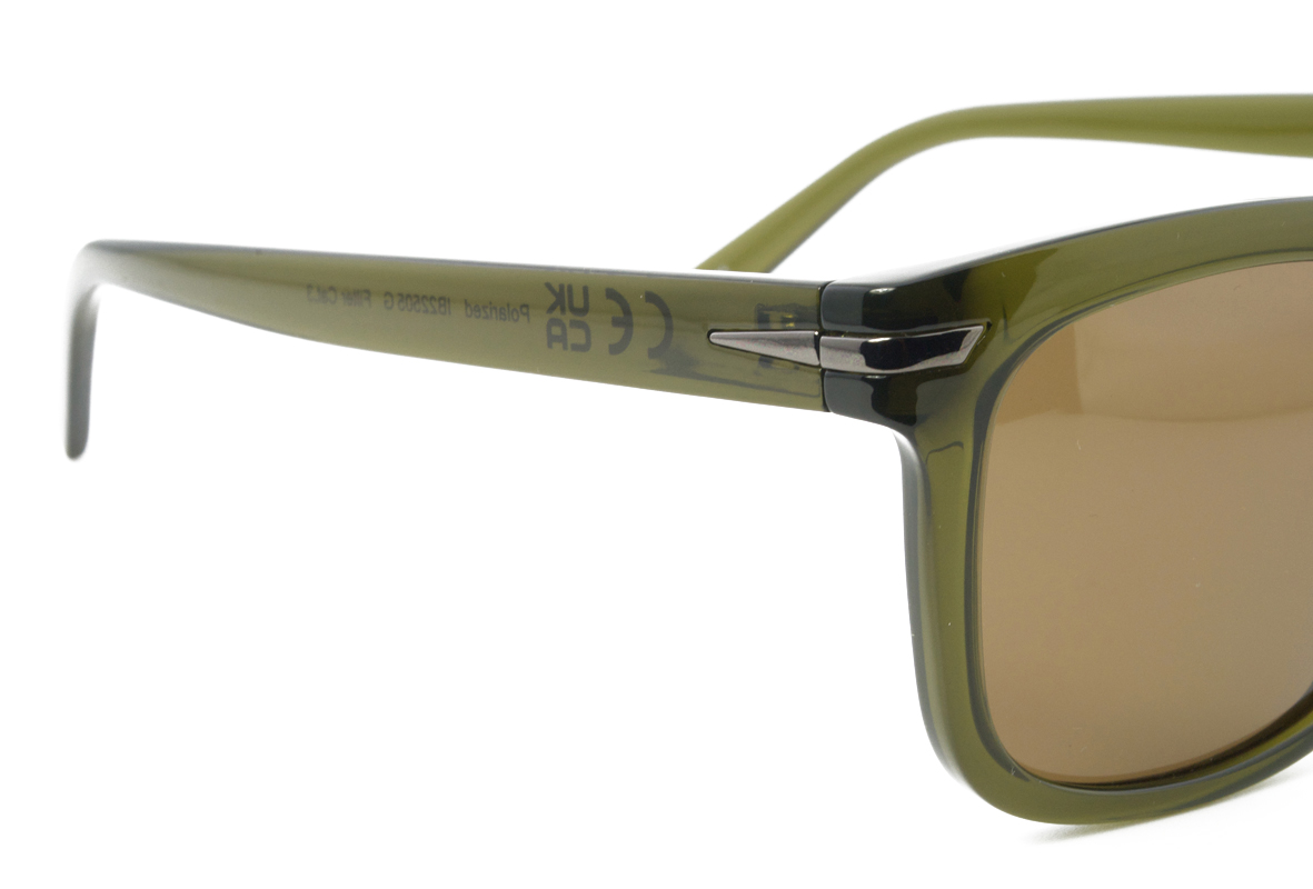 Πλαστικός tr90 αντρικός σκούρος πράσινος ημιδιάφανος, γυαλιστερός και ελαφρύς σκελετός σε τετράγωνο σχήμα και κλασικό στιλ με σκούρους καφέ πολωτικούς και ελαφρύ ασημί καθρέπτη φακούς.