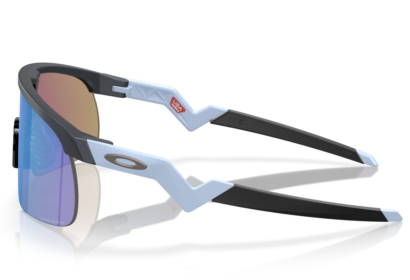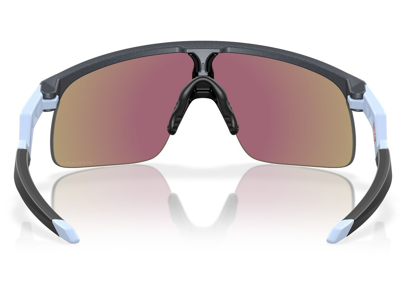 Πλαστικός tr90 εφηβικός ματ σκούρος γκρι-μπλε μεγάλης αντοχής σκελετός σε σχήμα μάσκα με σκούρους μωβ UV400 τεχνολογίας PRIZM και έντονο μπλε καθρέπτη φακό.