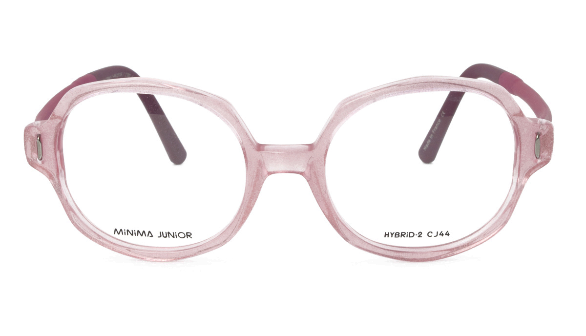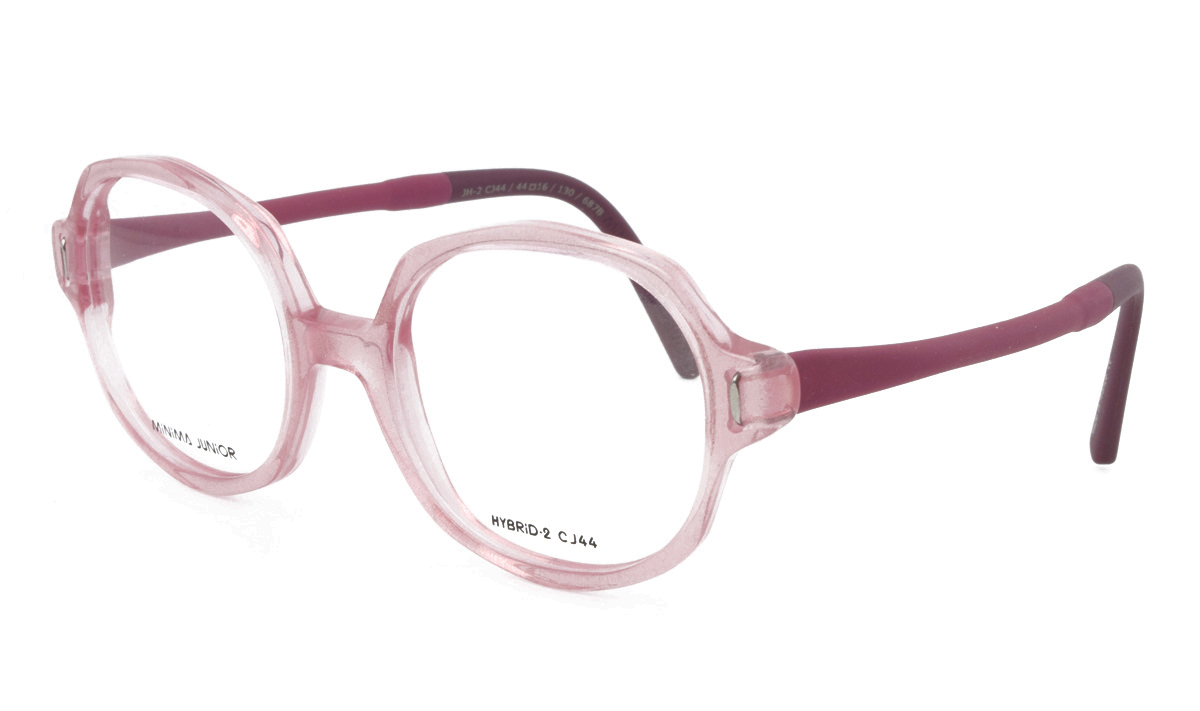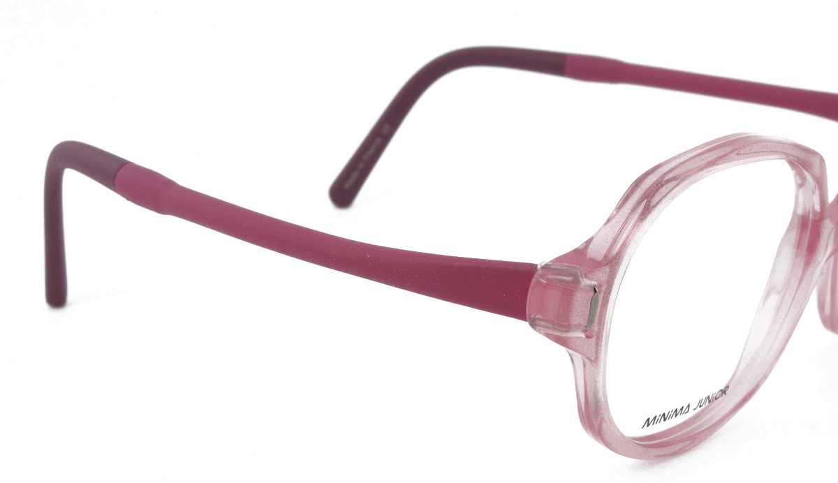 Πλαστικός tr90 παιδικός γκλίτερ ροζ-σκούρος μωβ γυαλιστερός, μεγάλης αντοχής και εύκαμπτός σκελετός με βραχίονες από τιτάνιο και επικάλυψη καουτσούκ σε στρογγυλό σχήμα και ρετρό στιλ. Ιδανικά για ηλικία 4-7 ετών.