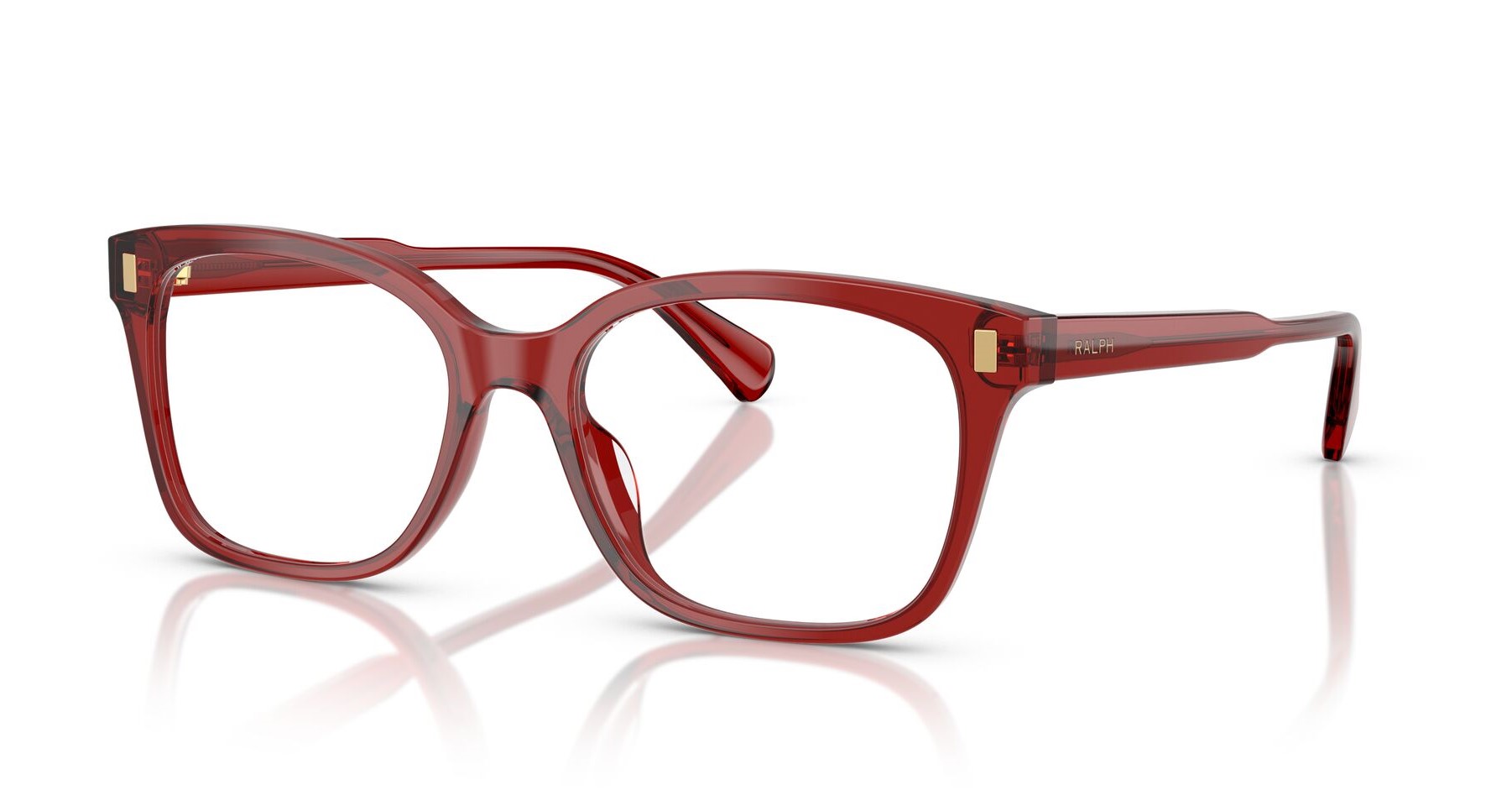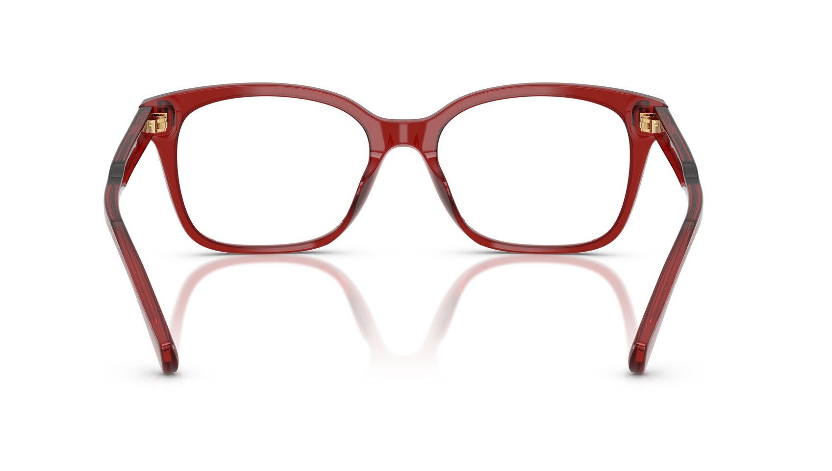 Κοκάλινος γυναικείος σκούρος κόκκινος ημιδιάφανος και γυαλιστερός σκελετός σε τετράγωνο σχήμα και κλασικό στιλ. Κατάλληλα για μυωπία, υπερμετρωπία και αστιγματισμό.