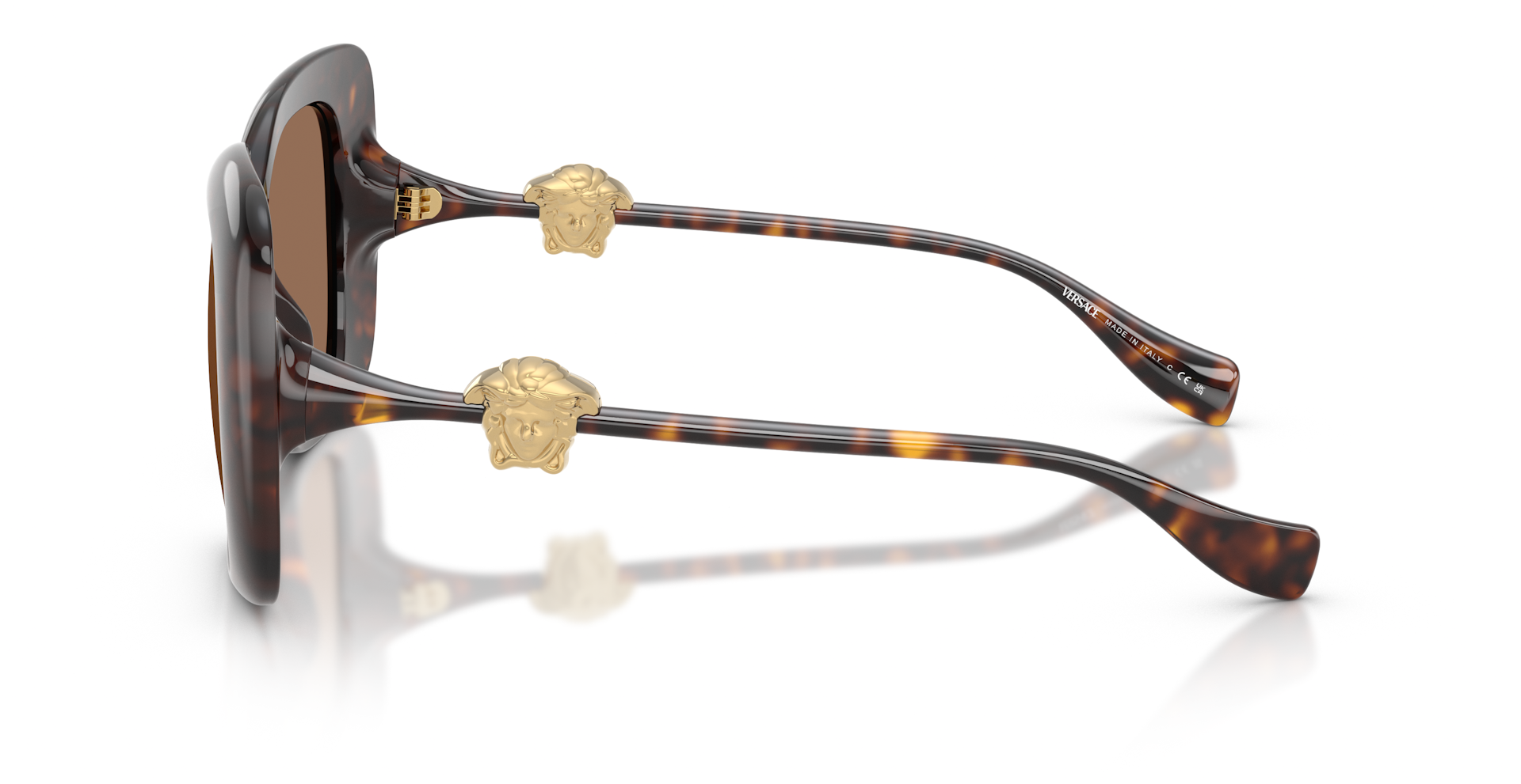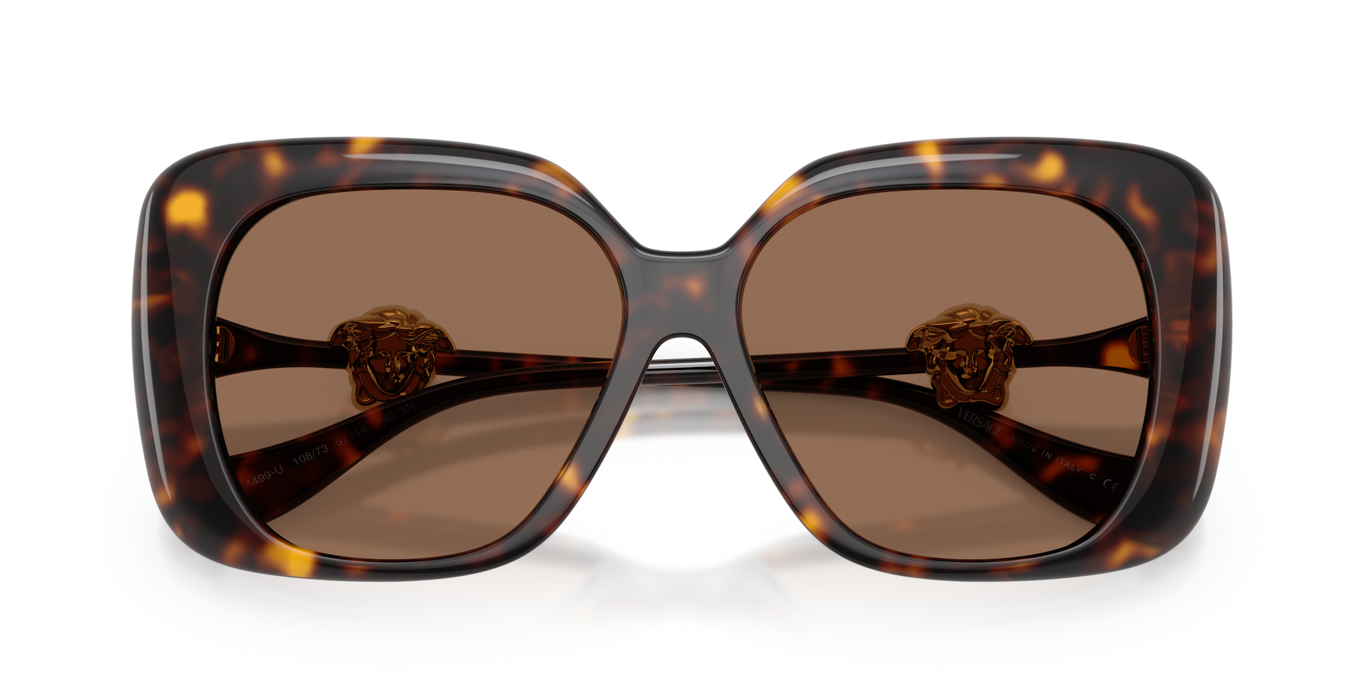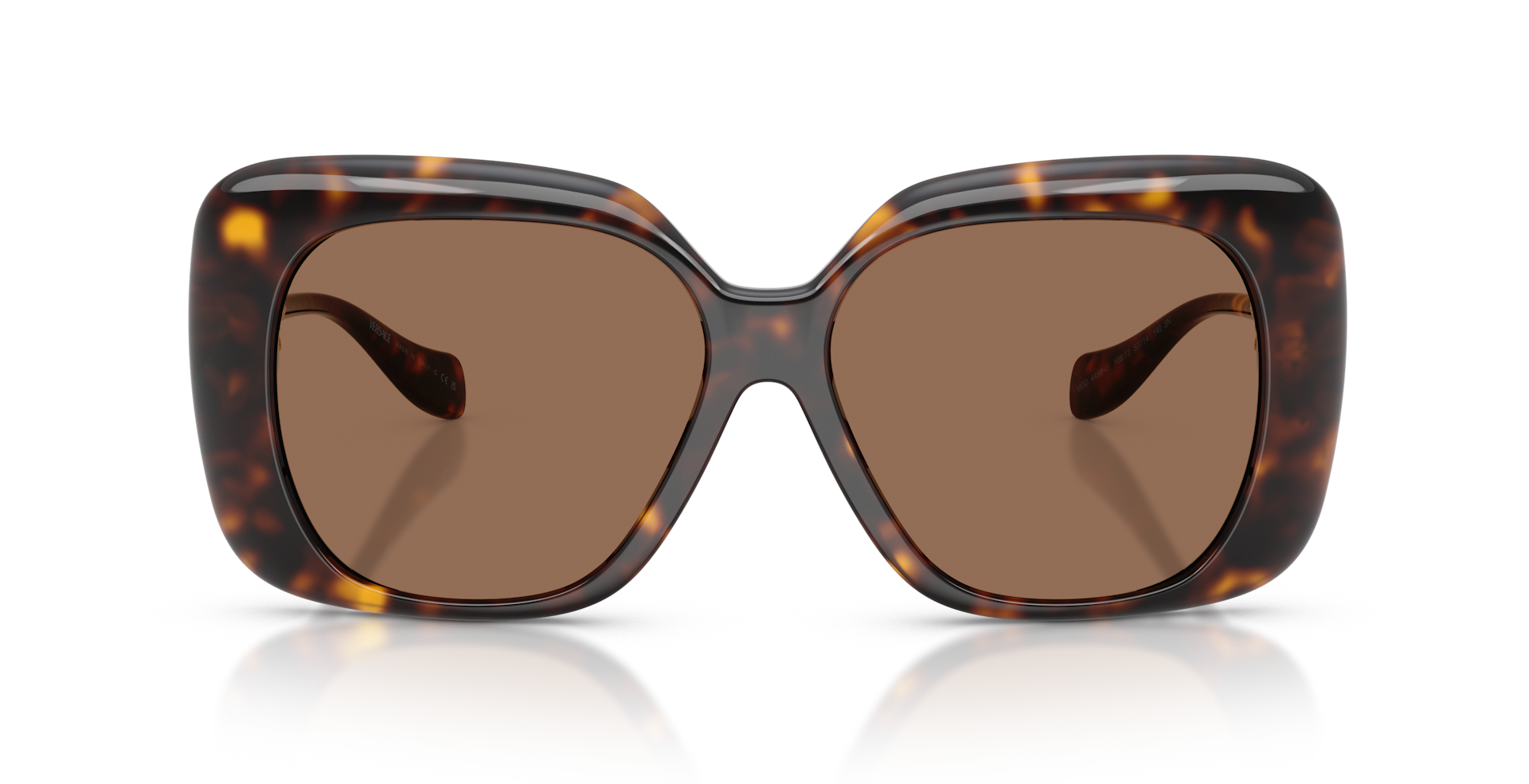 Κοκάλινος γυναικείος σκούρος καφέ ταρταρούγα γυαλιστερός σκελετός με χρυσό λογότυπο στους βραχίονες σε σχήμα oversized τετράγωνο και ρετρό στιλ με σκούρους καφέ UV400 φακούς.