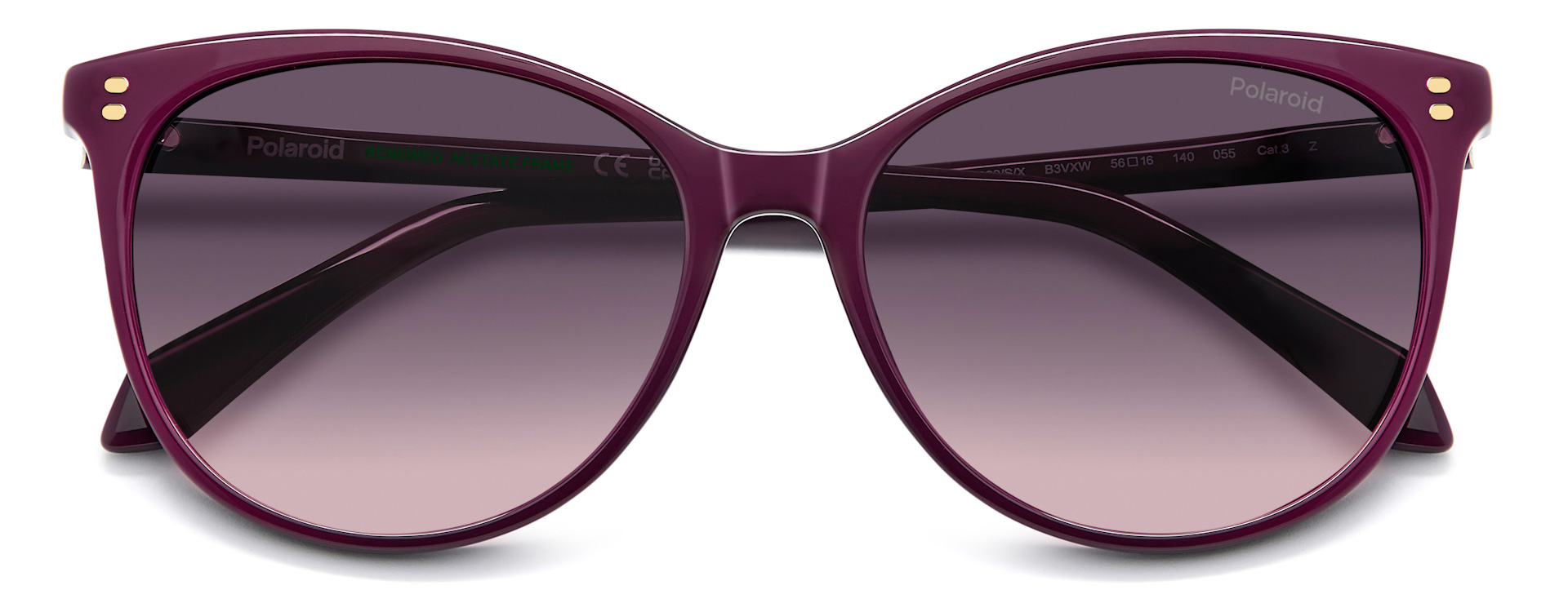 Πλαστικός tr90 γυναικείος σκούρος μωβ οικολογικός, γυαλιστερός και ελαφρύς σκελετός σε σχήμα στρογγυλή πεταλούδα και ρετρό στιλ με σκούρους μωβ πολωτικούς φακούς.