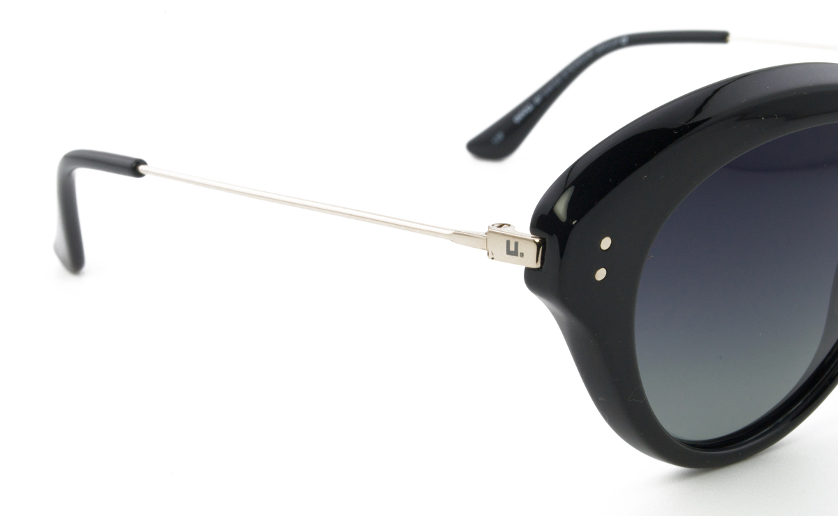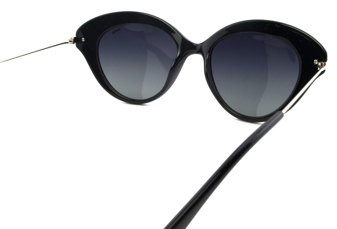 Κοκάλινος γυναικείος μαύρος-ασημί γυαλιστερός και ελαφρύς σκελετός με μεταλλικούς βραχίονες σε έντονη πεταλούδα σχήμα και vintage στιλ με δίχρωμους γκρι πολωτικούς φακούς.