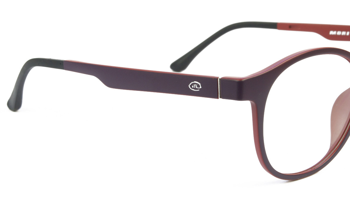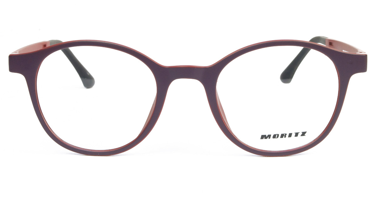 Πλαστικός tr90 γυναικείος ματ σκούρος μωβ-κόκκινος ελαφρύς σκελετός με πρόσθετο μαγνητικό uv400 κλιπ ηλίου σε σχήμα στρογγυλό και ρετρό στιλ.