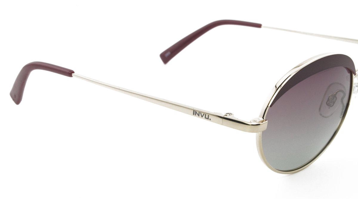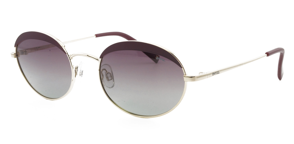 Μεταλλικός γυναικείος χρυσός-σκούρος μωβ ημιγυαλιστερός και ελαφρύς σκελετός σε οβάλ σχήμα και vintage στιλ με δίχρωμους γκρι πολωτικούς φακούς.