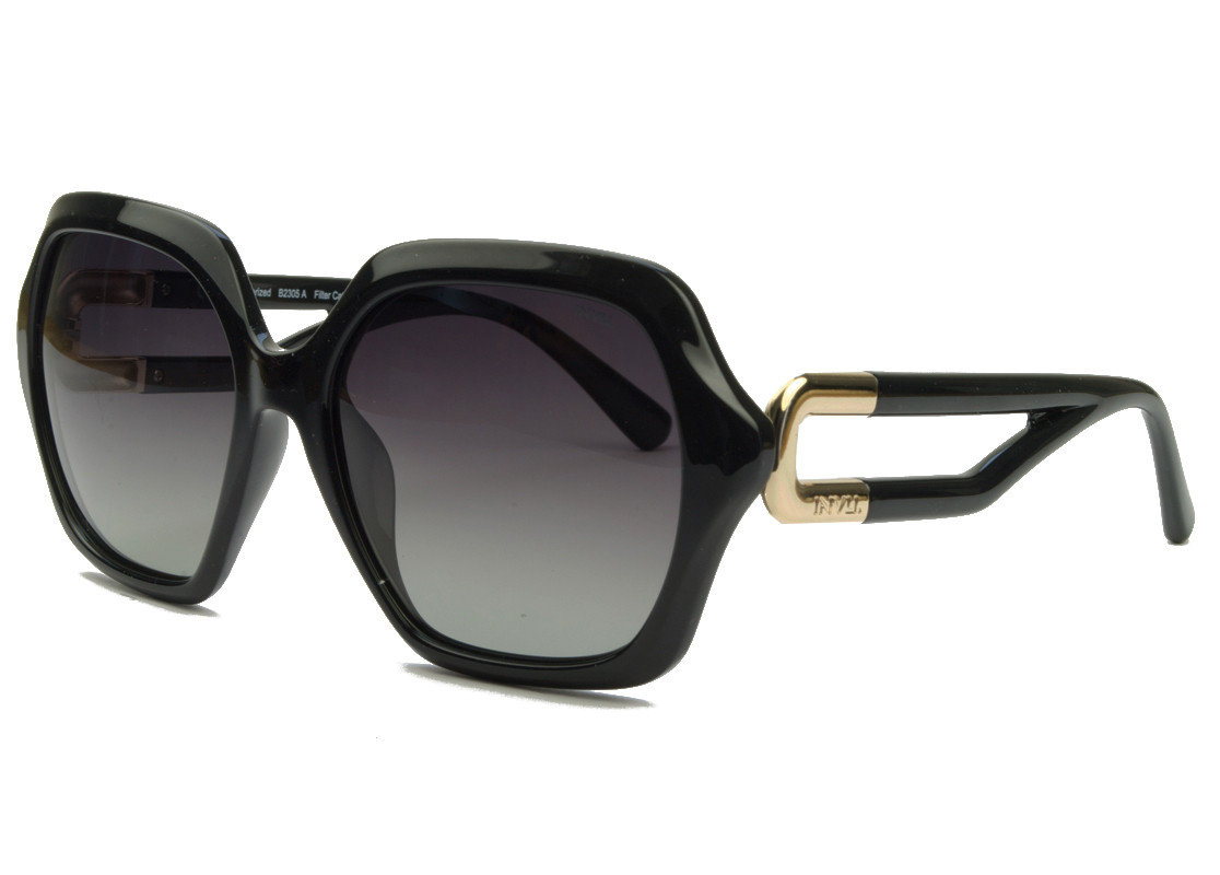 Πλαστικός tr90 γυναικείος μαύρος γυαλιστερός και ελαφρύς σκελετός σε oversized τετράγωνο σχήμα και ρετρό στιλ με δίχρωμους γκρι πολωτικούς φακούς.