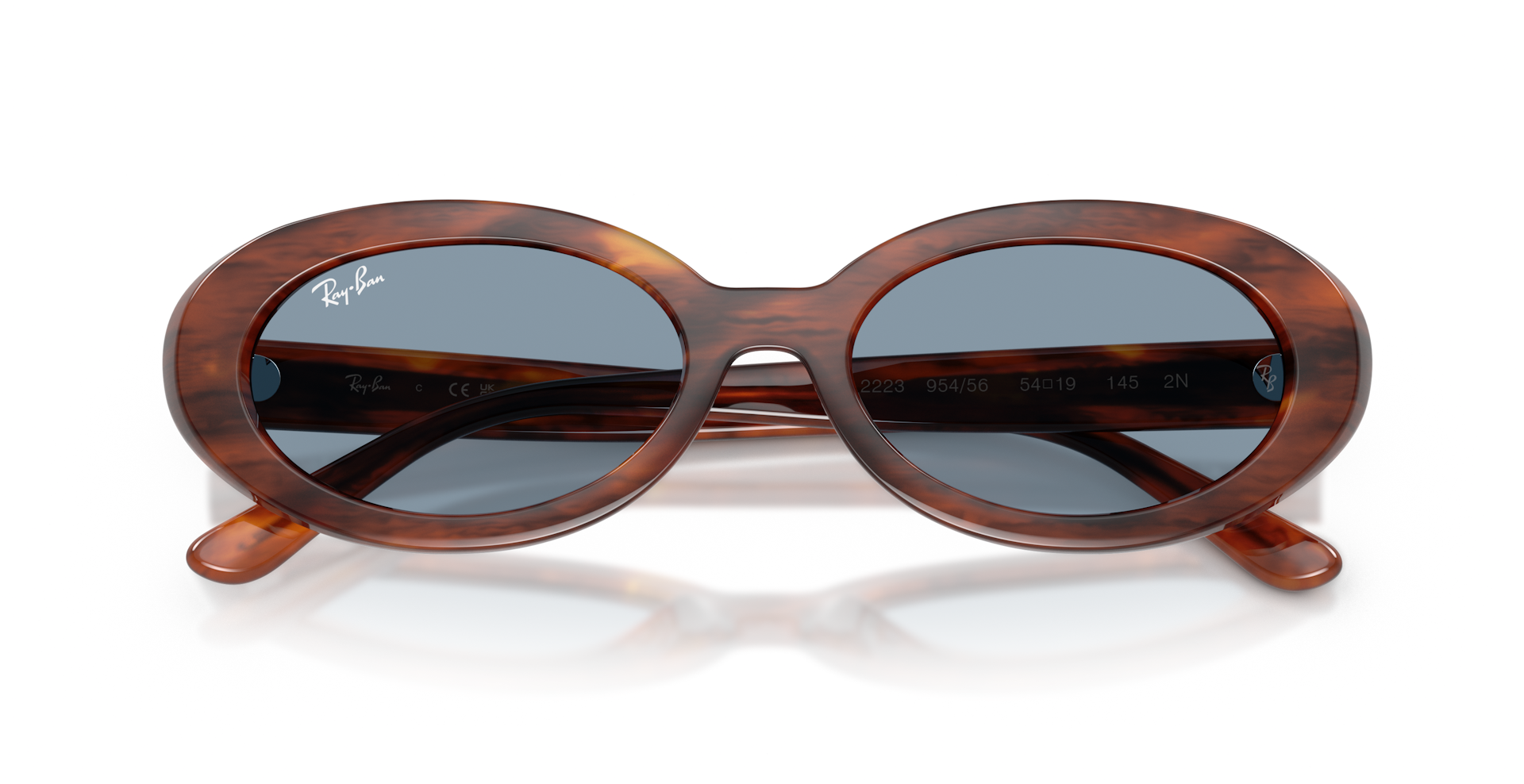Κοκάλινος γυναικείος καφέ ταρταρούγα γυαλιστερός σκελετός σε οβάλ σχήμα και vintage στιλ με μπλε UV400 κρυστάλλινους και ανοιχτόχρωμους φακούς.