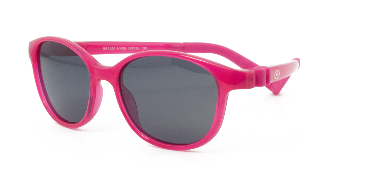 Παιδικός σκούρος ροζ μεγάλης αντοχής, εύκαμπτος και ελαφρύς σκελετός από καουτσούκ σε οβάλ σχήμα και ρετρό στιλ με σκούρους γκρι πολωτικούς φακούς.