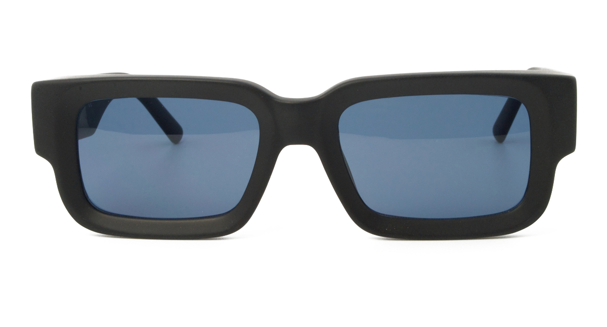 Κοκάλινος αντρικός ματ μαύρος σκελετός σε σχήμα μακρόστενο και hip hop στιλ με μπλε UV400 ανοιχτόχρωμους φακούς.
