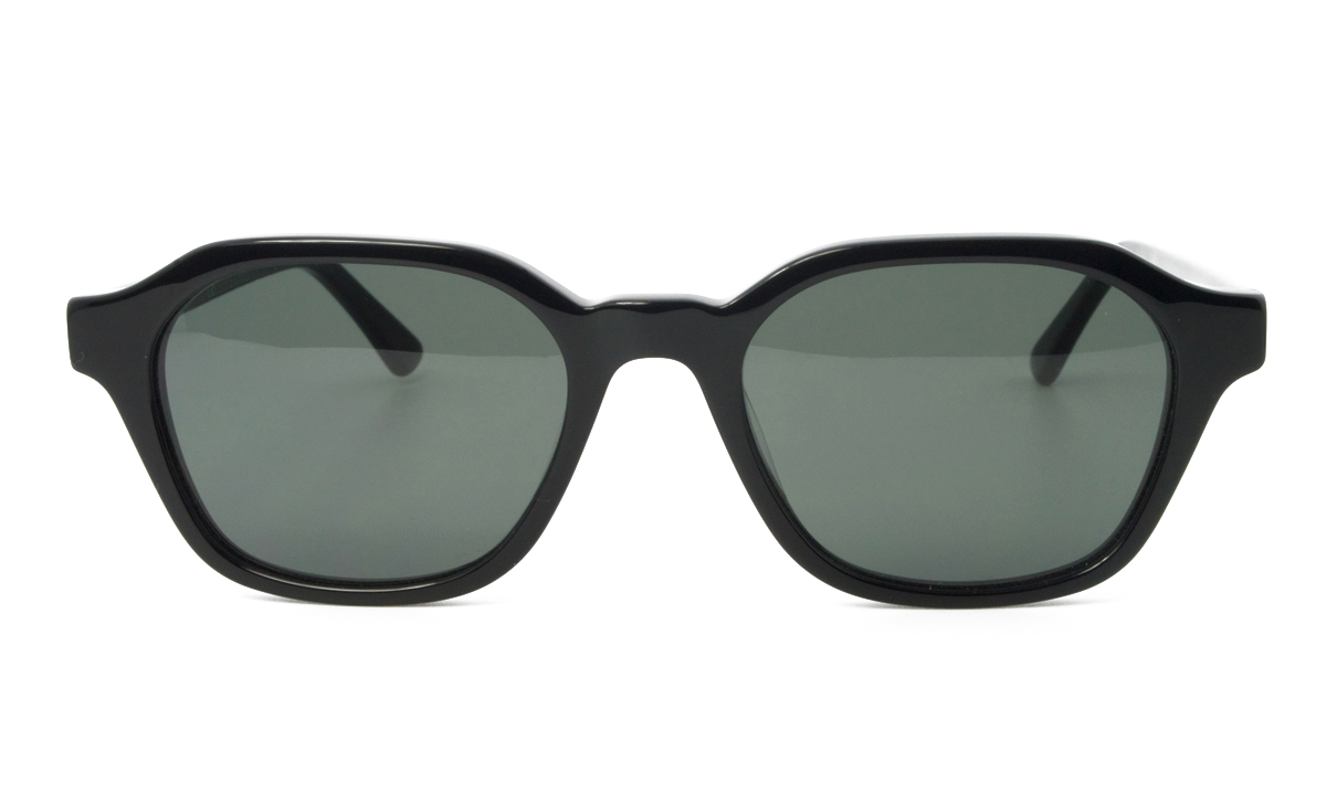 Κοκάλινος αντρικός μαύρος γυαλιστερός σκελετός σε σχήμα τετράγωνο και κλασικό στιλ με σκούρους γκρι UV400 φακούς.