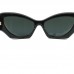 Κοκάλινος γυναικείος μαύρος γυαλιστερός σκελετός με χρυσό λογότυπο στους βραχίονες σε σχήμα έντονο οβάλ και φουτουριστικό στιλ με σκούρους γκρι UV400 φακούς.