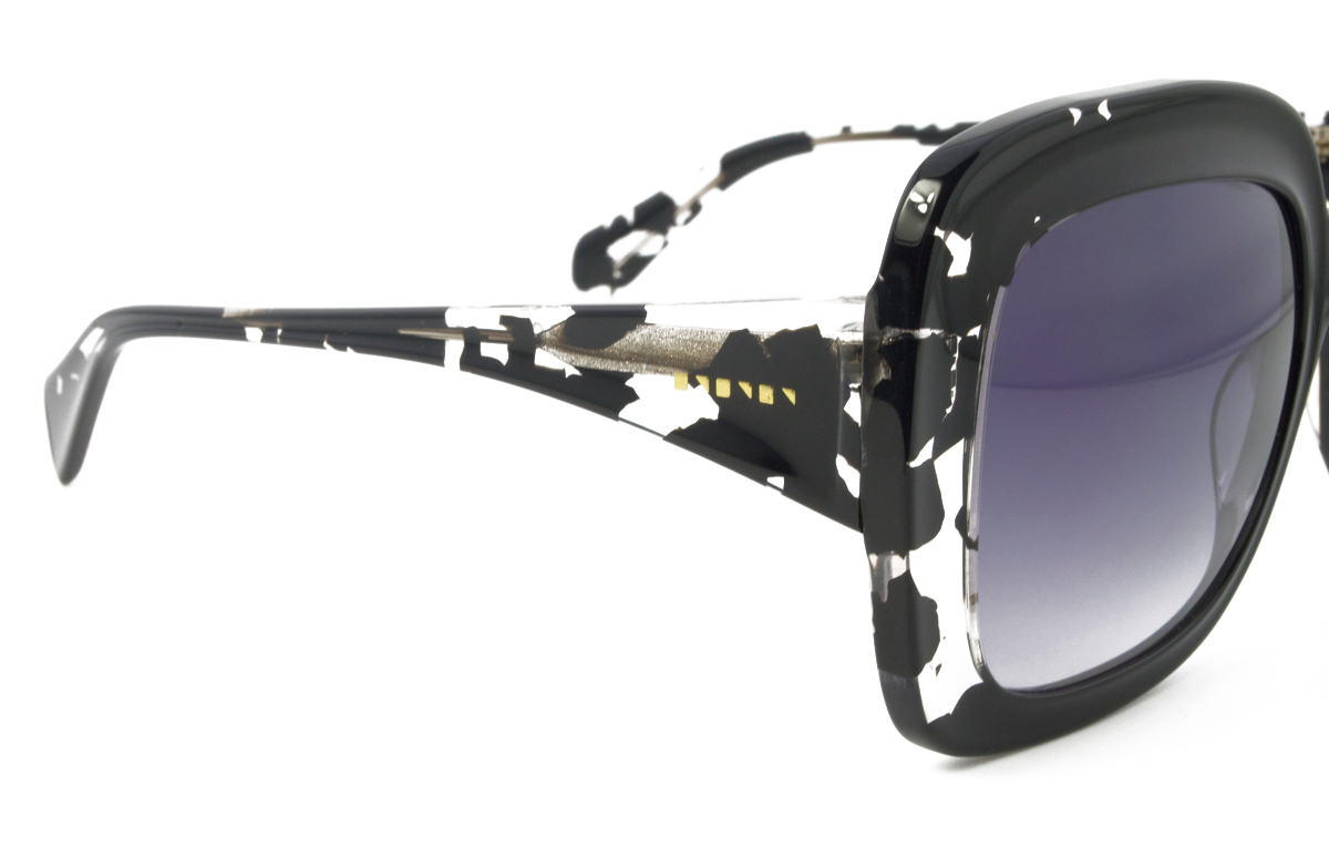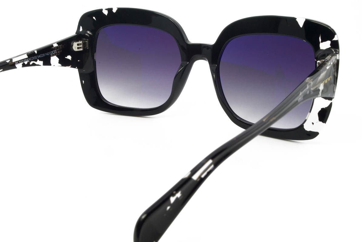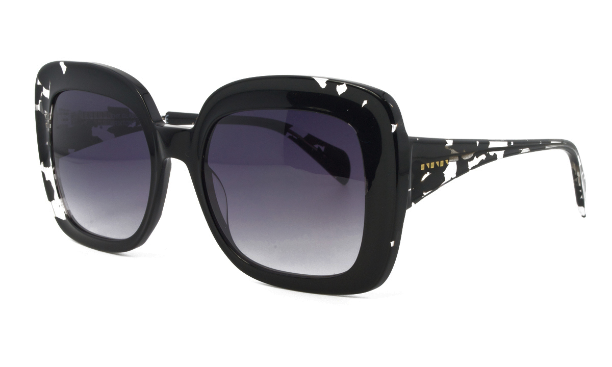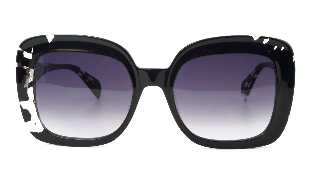 Κοκάλινος γυναικείος μαύρος γυαλιστερός σκελετός σε σχήμα oversized τετράγωνο και ρετρό στιλ με δίχρωμους γκρι UV400 φακούς.