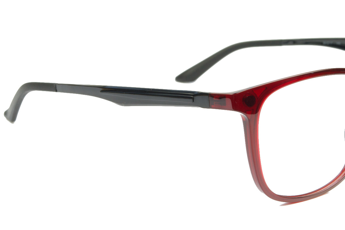 Κοκάλινος γυναικείος σκούρος κόκκινος-μαύρος ημιδιάφανος, γυαλιστερός και ελαφρύς σκελετός με βραχίονες από καουτσούκ και πρόσθετα μαγνητικά πολωτικό κλιπ ηλίου σε σχήμα πεταλούδα και ρετρό στιλ.