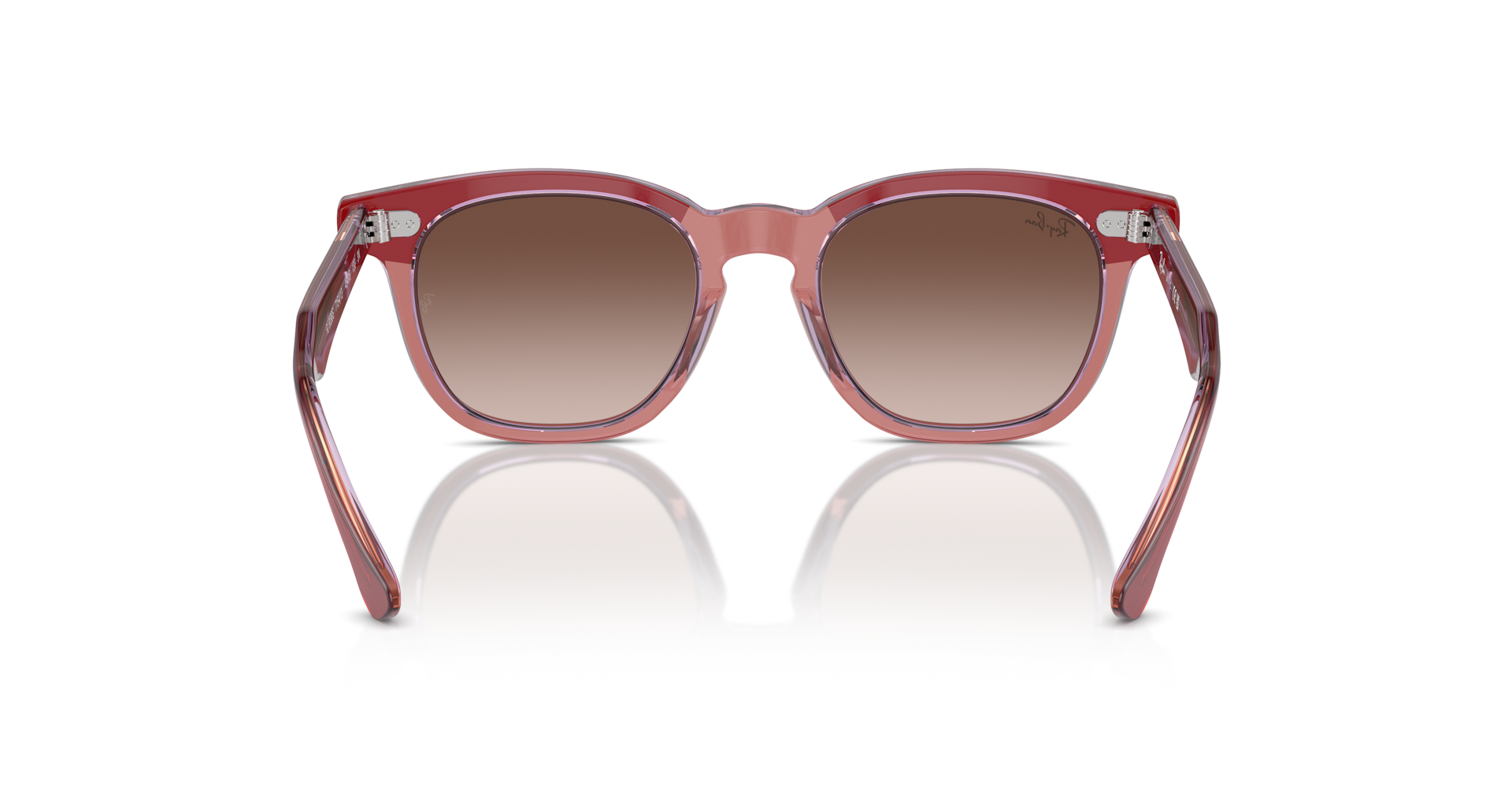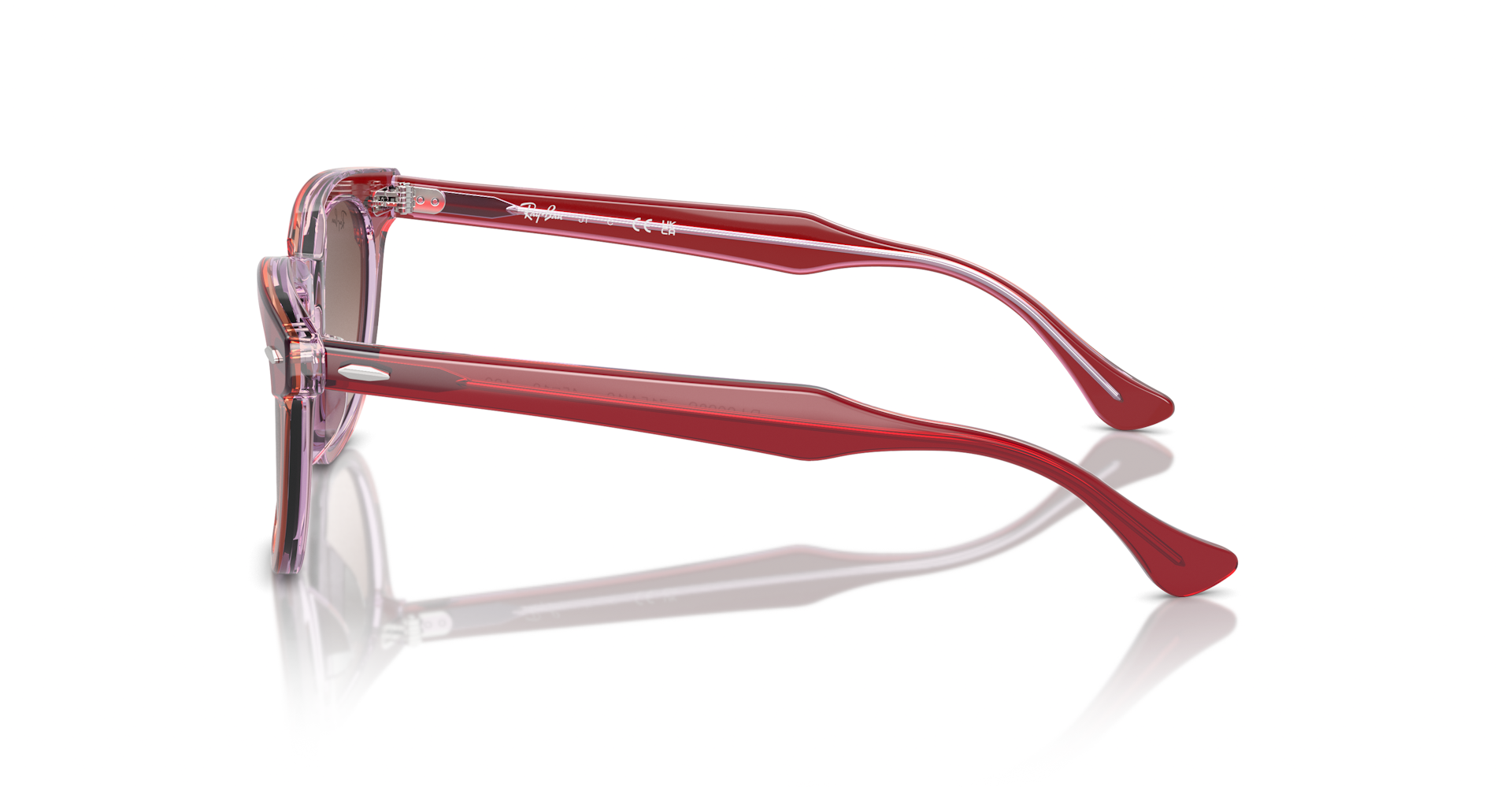 Κοκάλινος παιδικός κόκκινος-ροζ ημιδιάφανος και γυαλιστερός σκελετός σε τετράγωνο σχήμα και ρετρό στιλ με δίχρωμους καφέ UV400 φακούς.