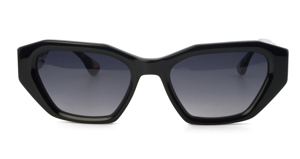 Κοκάλινος γυναικείος μαύρος-γκρι γυαλιστερός σκελετός σε πολυγωνική πεταλούδα σχήμα και μοντέρνο στιλ με δίχρωμους γκρι UV400 φακούς.
