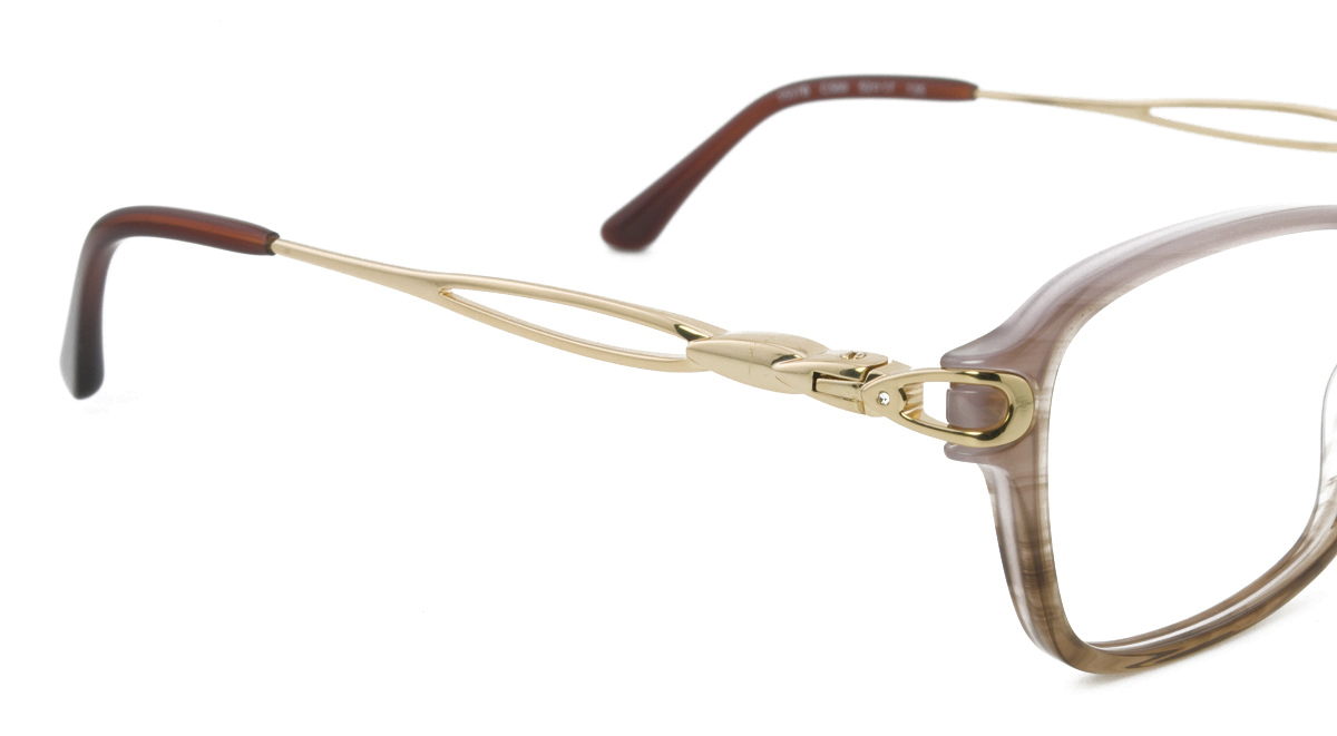 Κοκάλινος γυναικείος μπεζ-ροζ ημιδιάφανος γυαλιστερός και ελαφρύς σκελετός με μεταλλικούς χρυσούς βραχίονες σε σχήμα τετράγωνο και ρετρό στιλ. Κατάλληλα για πρεσβυωπία.
