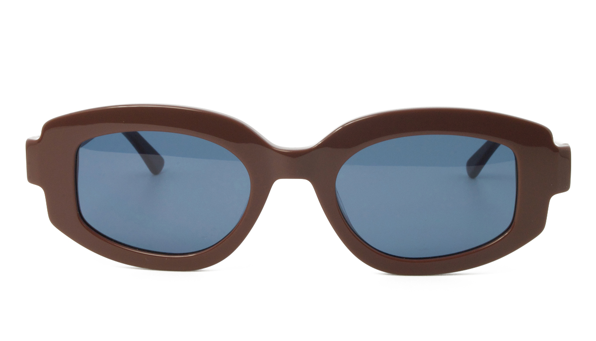 Κοκάλινος γυναικείος καφέ γυαλιστερός σκελετός σε σχήμα οβάλ και boho στιλ με σκούρους μπλε UV400 φακούς.