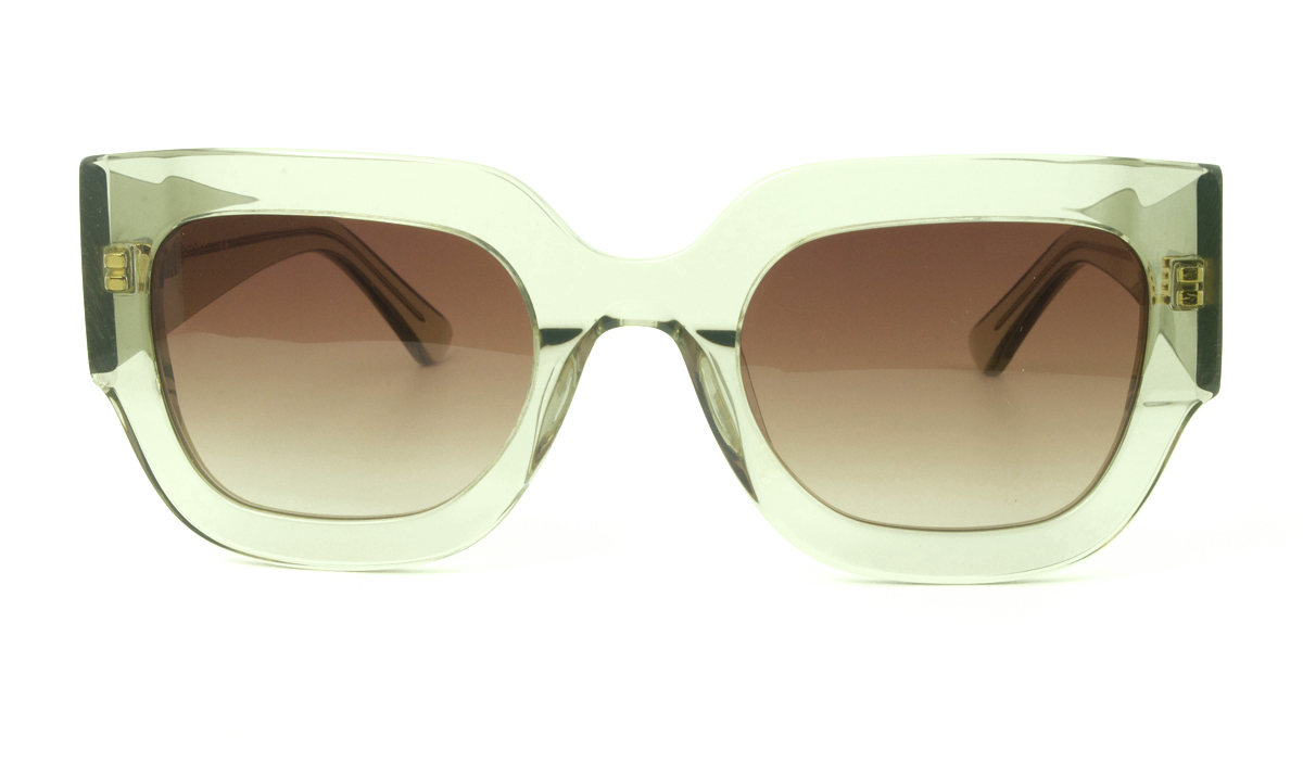 Κοκάλινος γυναικείος πράσινος ημιδιάφανος και γυαλιστερός σκελετός σε σχήμα έντονη πεταλούδα και ρετρό στιλ με δίχρωμους καφέ UV400 φακούς.