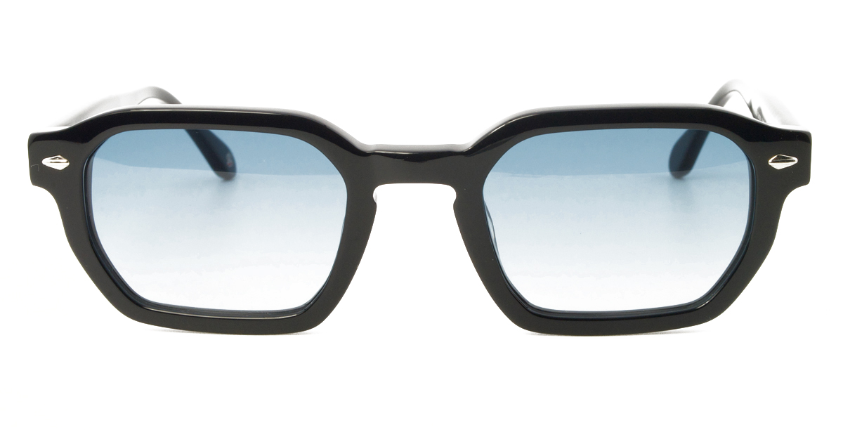 Κοκάλινος unisex μαύρος γυαλιστερός σκελετός σε μίνι τετράγωνο σχήμα και ρετρό στιλ με δίχρωμους μπλε UV400 ανοιχτόχρωμους φακούς.