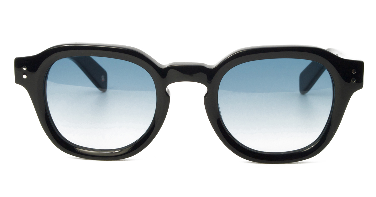 Κοκάλινος unisex μαύρος γυαλιστερός σκελετός σε οβάλ σχήμα και ρετρό στιλ με δίχρωμους μπλε UV400 ανοιχτόχρωμους φακούς.