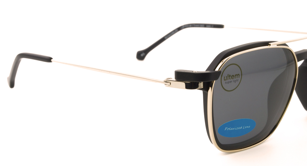Κοκάλινος unisex ματ μαύρος-χρυσός ελαφρύς σκελετός με μεταλλικούς βραχίονες και πρόσθετο μαγνητικό πολωτικό κλιπ ηλίου σε σχήμα τετράγωνο και κλασικό στιλ.