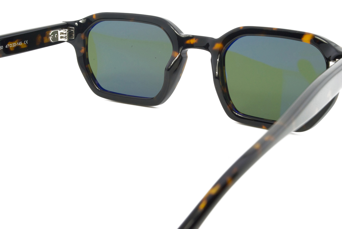 Κοκάλινος unisex σκούρος καφέ ταρταρούγα γυαλιστερός σκελετός σε μίνι τετράγωνο σχήμα και ρετρό στιλ με σκούρους πράσινους UV400 φακούς.