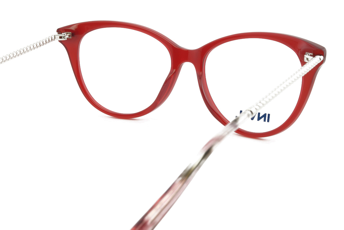 Κοκάλινος γυναικείος κόκκινος-ασημί ελαφρύς σκελετός με μεταλλικούς βραχίονες και πρόσθετο μαγνητικό πολωτικό κλιπ ηλίου σε σχήμα πεταλούδα και ρετρό στιλ.