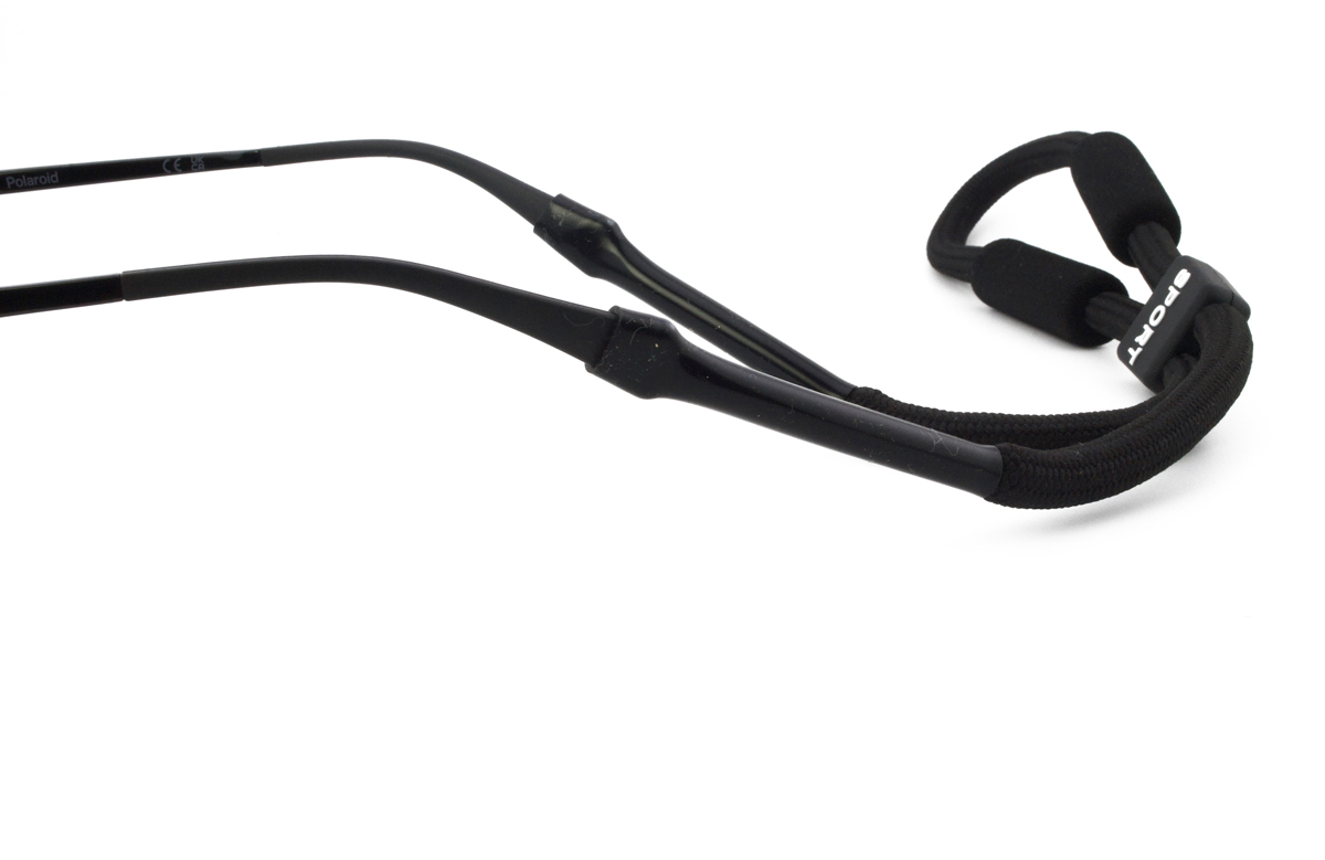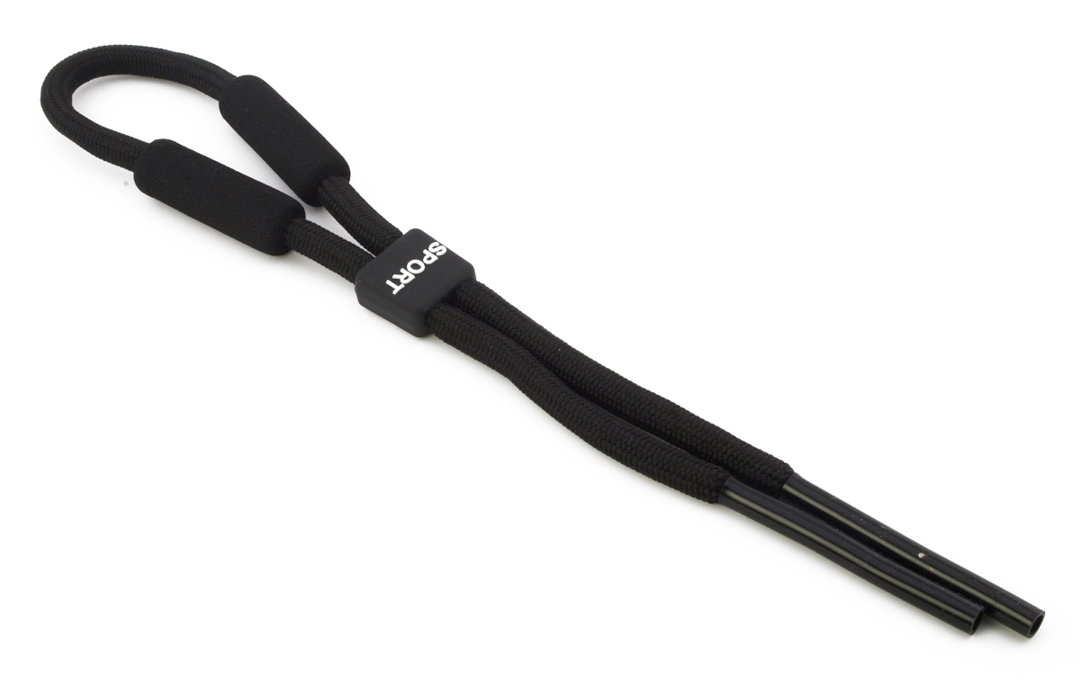 Unisex ρυθμιζόμενο κορδόνι γυαλιών σε μαύρο χρώμα κατάλληλο για θαλάσσια σπορ. Ταιριάζει σε όλους τους τύπους γυαλιών, ηλίου και οράσεως και επιπλέει στο νερό.