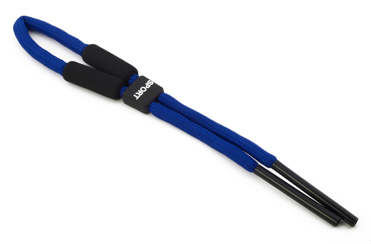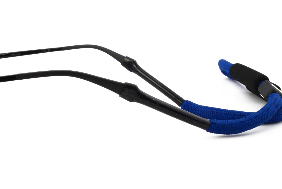 Unisex ρυθμιζόμενο κορδόνι γυαλιών σε μπλε χρώμα κατάλληλο για θαλάσσια σπορ. Ταιριάζει σε όλους τους τύπους γυαλιών, ηλίου και οράσεως και επιπλέει στο νερό.