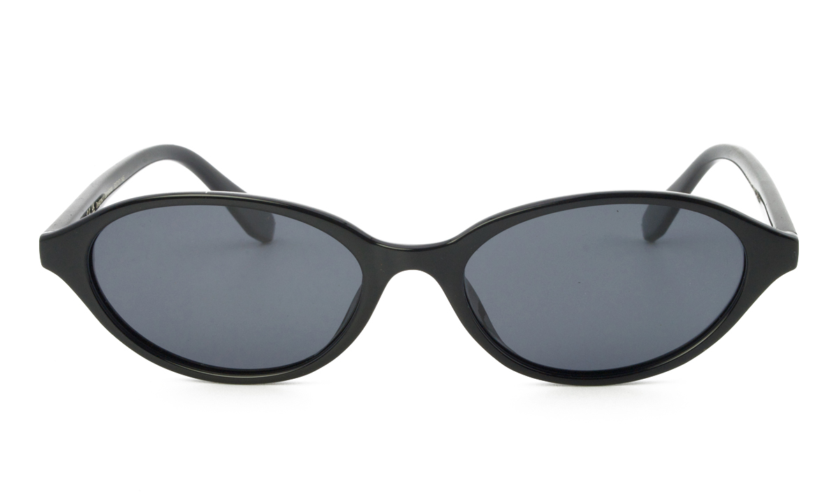 Κοκάλινος unisex μαύρος γυαλιστερός και ελαφρύς σκελετός σε οβάλ σχήμα και ρετρό στιλ με σκούρους γκρι πολωτικούς φακούς.