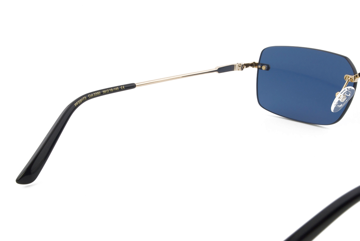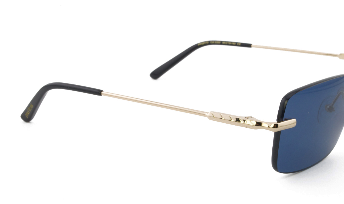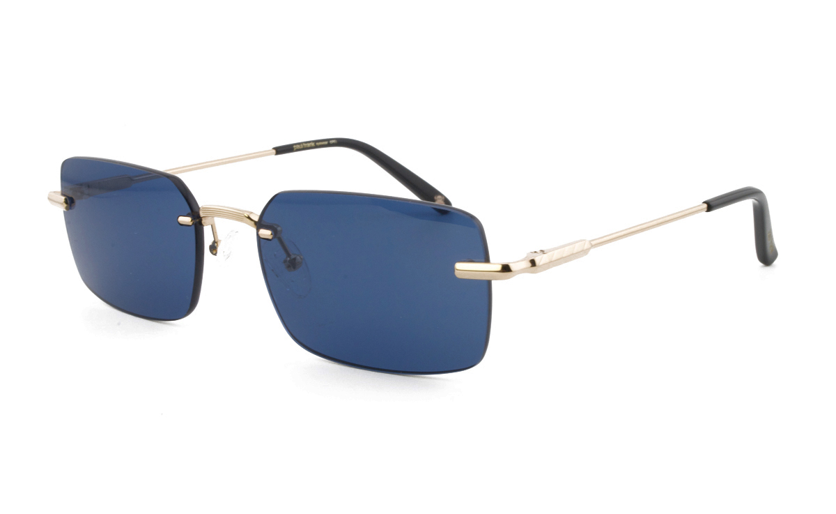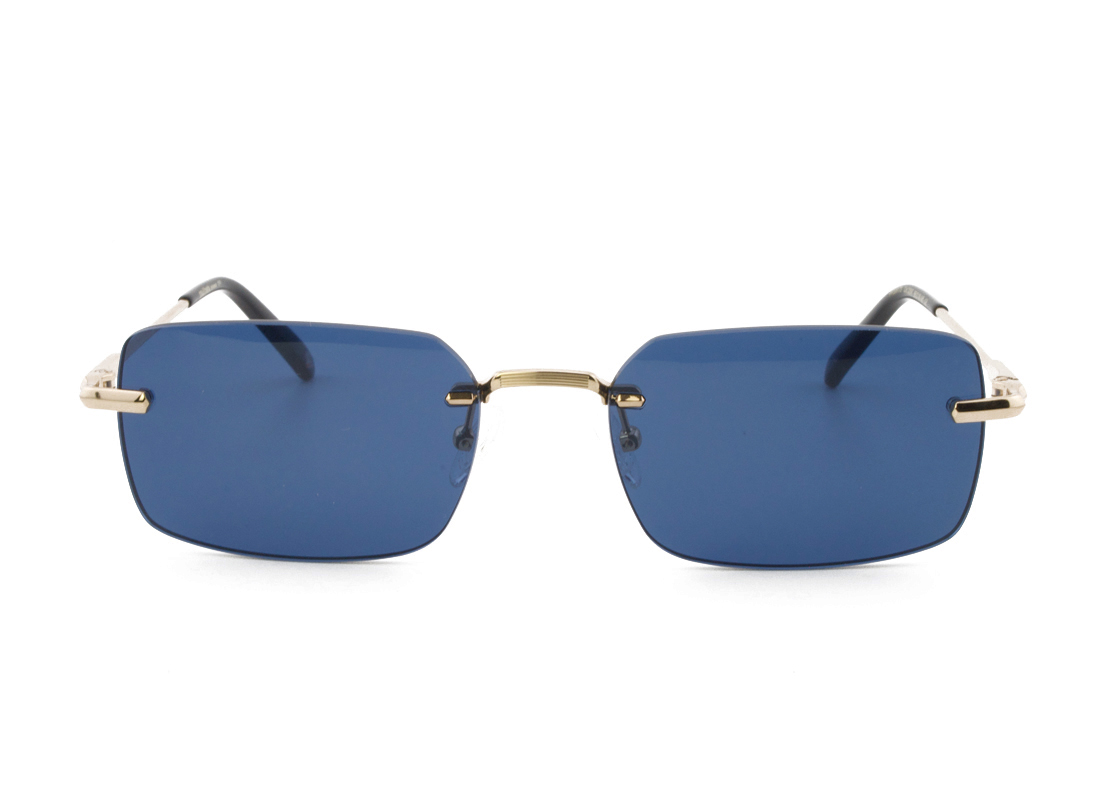 Μεταλλικός griff unisex χρυσός γυαλιστερός σκελετός σε μίνι τετράγωνο σχήμα και ρετρό στιλ με σκούρους μπλε UV400 φακούς.