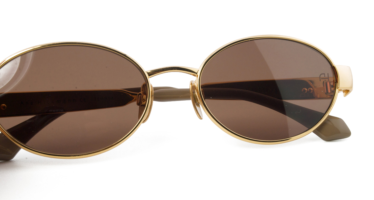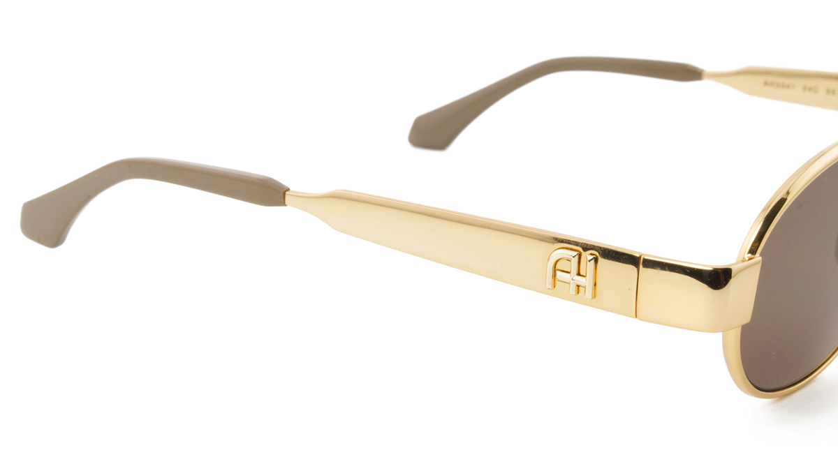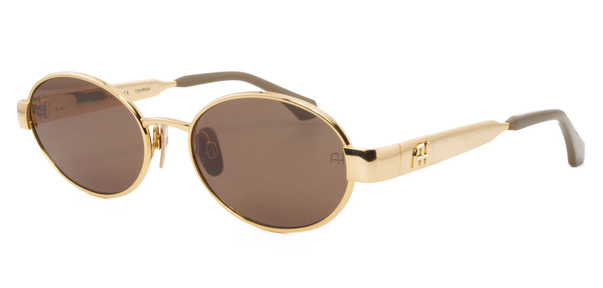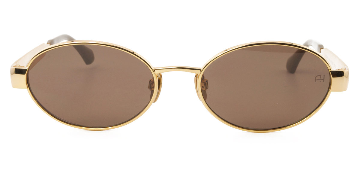 Μεταλλικός γυναικείος χρυσός γυαλιστερός σκελετός σε σχήμα οβάλ και ρετρό στιλ με σκούρους καφέ UV400 φακούς.