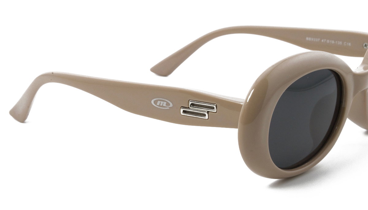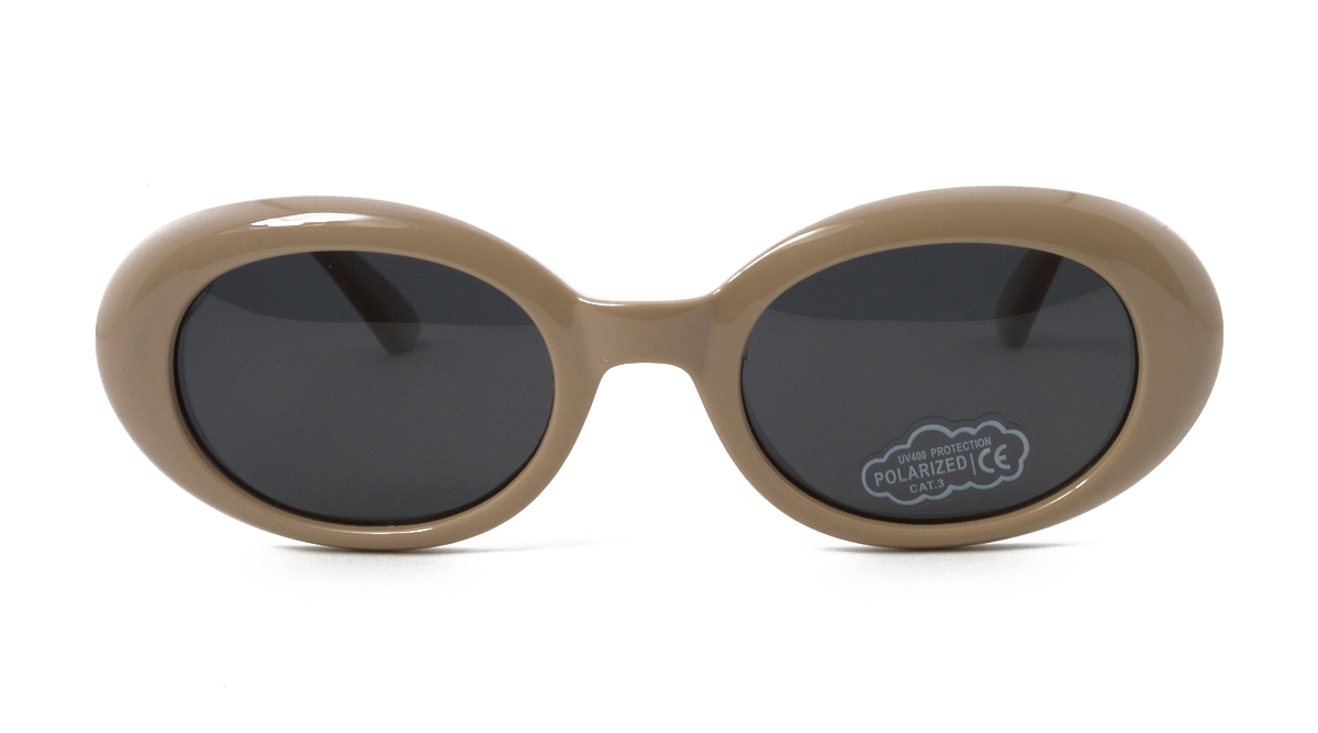 Πλαστικός tr90 παιδικός μπεζ μεγάλης αντοχής, εύκαμπτος και ελαφρύς σκελετός σε οβάλ σχήμα και ρετρό στιλ με σκούρους γκρι πολωτικούς φακούς.