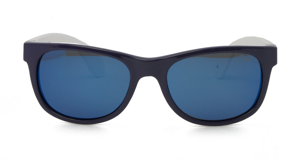 Πλαστικός tr90 παιδικό μπλε-λευκός μεγάλης αντοχής και ελαφρύς σκελετός σε mini τετράγωνο σχήμα και κλασικό στιλ με σκούρους γκρι πολωτικούς μπλε καθρέπτη φακούς.
