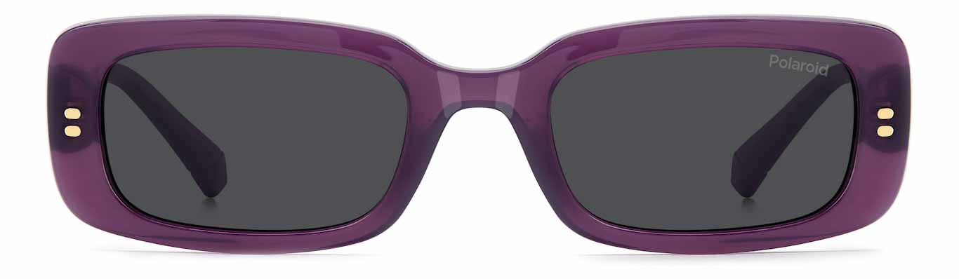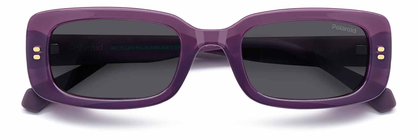 Κοκάλινος παιδικός σκούρος μωβ γυαλιστερός και οικολογικός σκελετός σε μακρόστενο σχήμα και boho στιλ με σκούρους γκρι πολωτικούς φακούς.