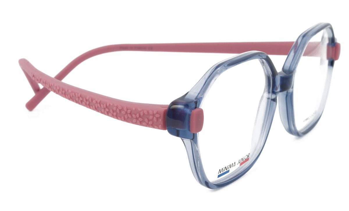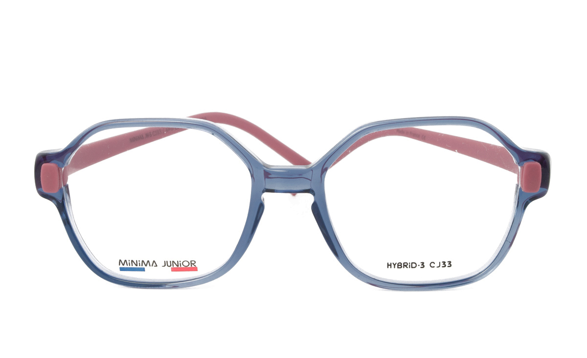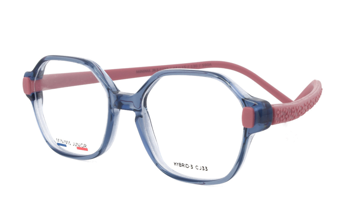 Πλαστικός tr90 παιδικός σκούρος μπλε-ροζ ημιδιάφανος, μεγάλης αντοχής και ελαφρύς σκελετός με εύκαμπτους βραχίονες από καουτσούκ σε πολυγωνικό σχήμα και μοντέρνο στιλ. Ιδανικά για ηλικία 1-4 ετών.