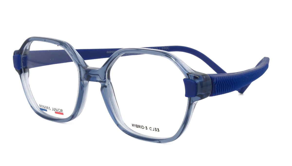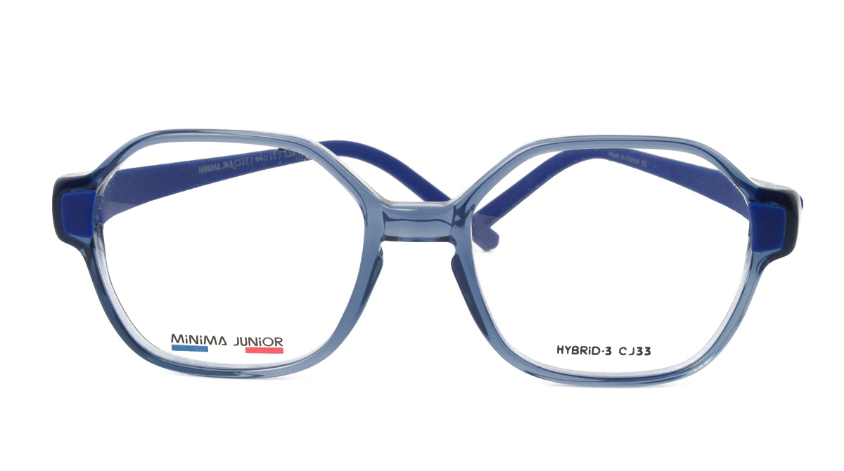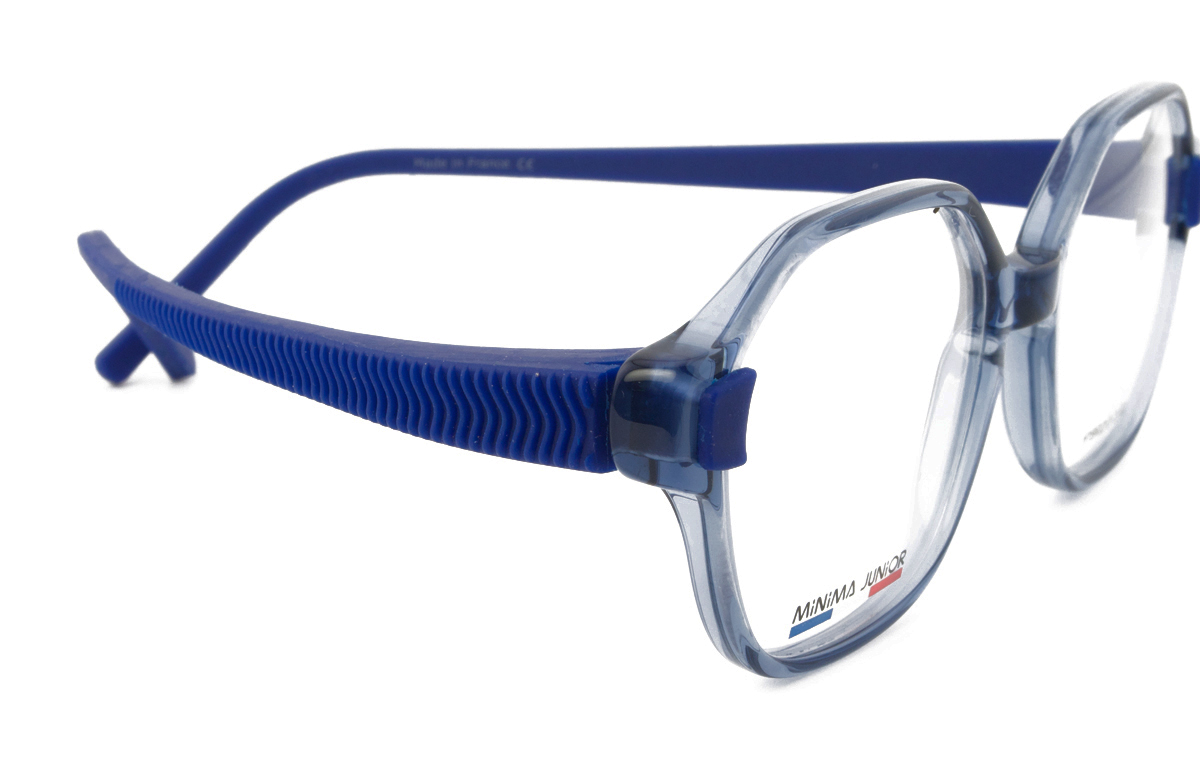 Πλαστικός tr90 παιδικός σκούρος μπλε ημιδιάφανος, μεγάλης αντοχής και ελαφρύς σκελετός με εύκαμπτους βραχίονες από καουτσούκ σε πολυγωνικό σχήμα και μοντέρνο στιλ. Ιδανικά για ηλικία 1-4 ετών.