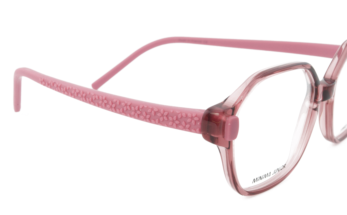 Πλαστικός tr90 παιδικός σκούρος ροζ ημιδιάφανος, μεγάλης αντοχής και ελαφρύς σκελετός με εύκαμπτους βραχίονες από καουτσούκ σε πολυγωνικό σχήμα και μοντέρνο στιλ. Ιδανικά για ηλικία 1-4 ετών.
