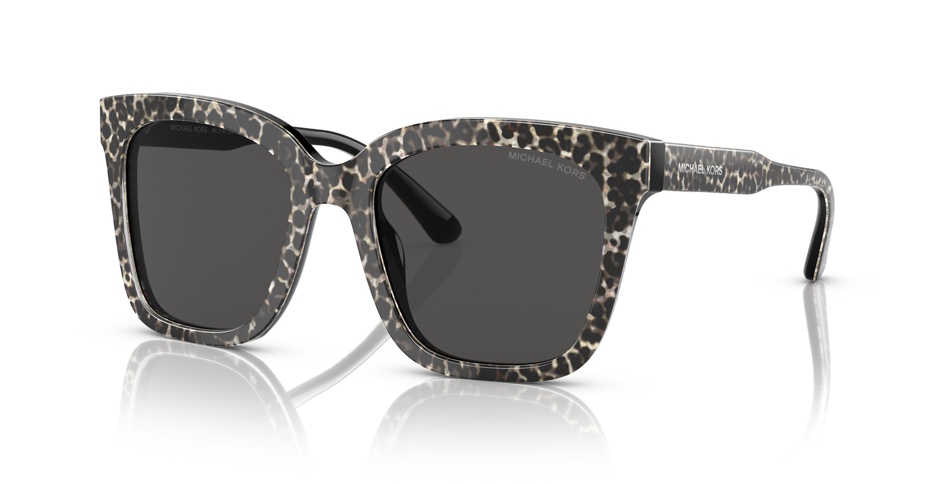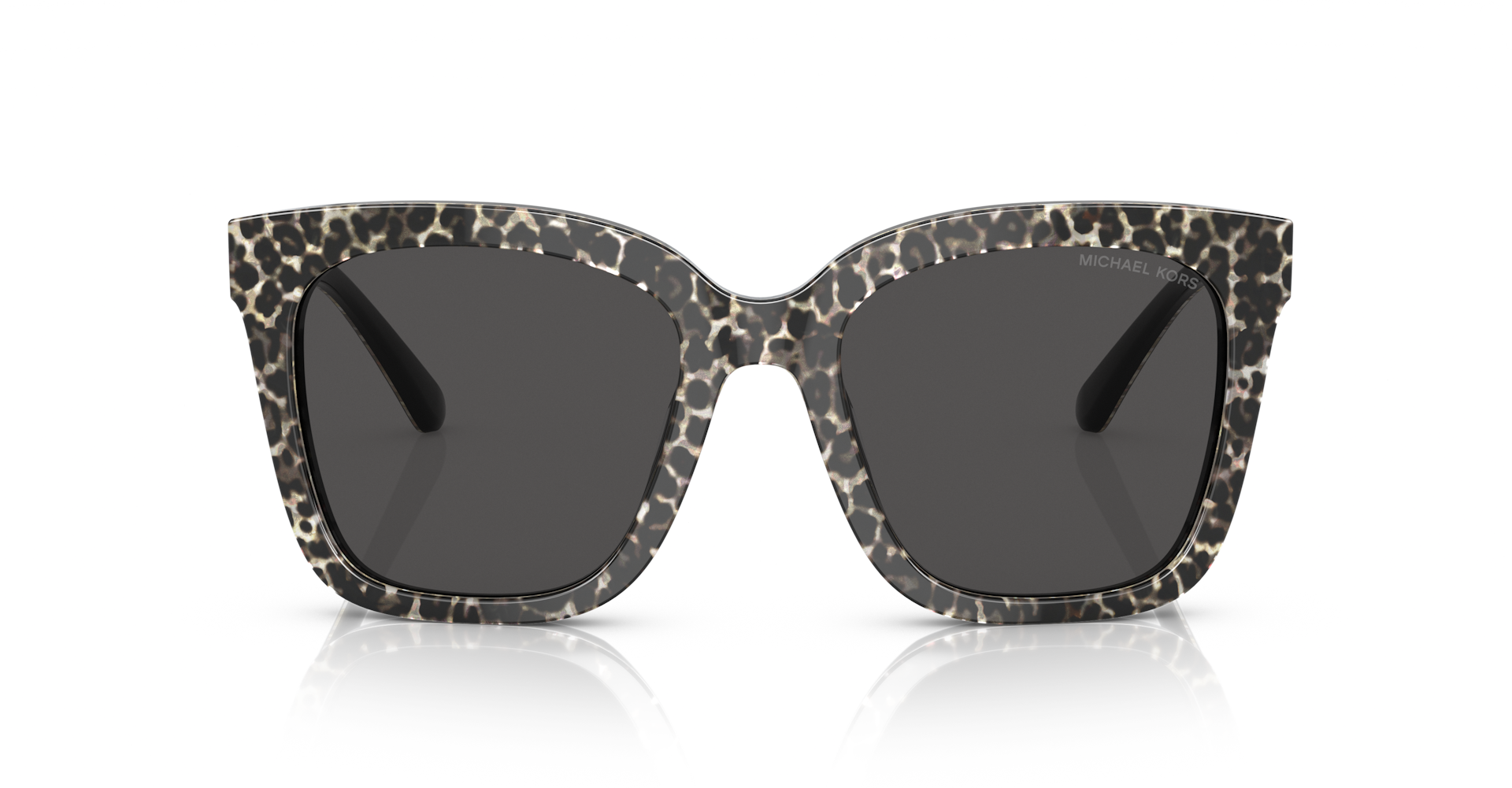 Κοκάλινος γυναικείος animal print μαύρος-γκρι γυαλιστερός σκελετός σε σχήμα τετράγωνο και κλασικό στιλ με σκούρους γκρι UV400 φακούς.