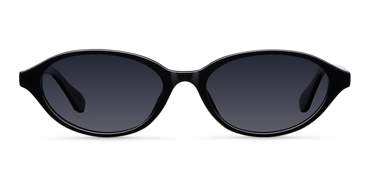 Κοκάλινος unisex μαύρος γυαλιστερός και ελαφρύς σκελετός σε οβάλ σχήμα και ρετρό στιλ με σκούρους γκρι πολωτικούς φακούς.