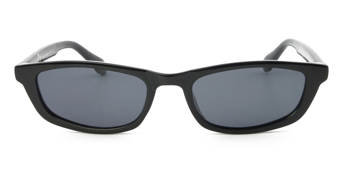 Κοκάλινος unisex μαύρος γυαλιστερός και ελαφρύς σκελετός σε μακρόστενο σχήμα και ρετρό στιλ με σκούρους γκρι πολωτικούς φακούς.
