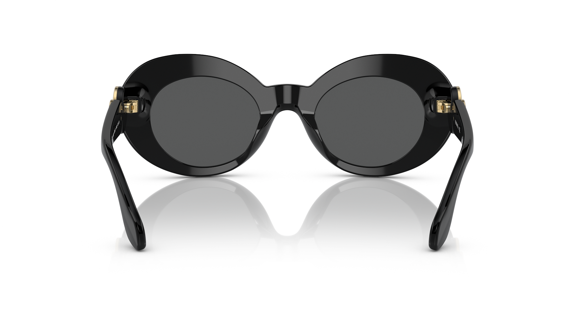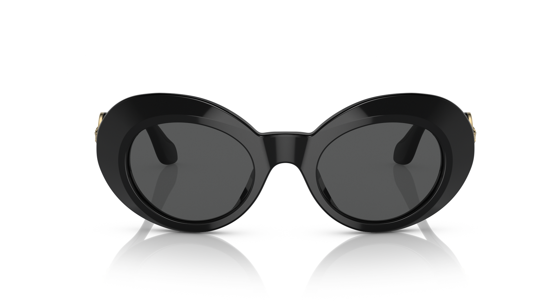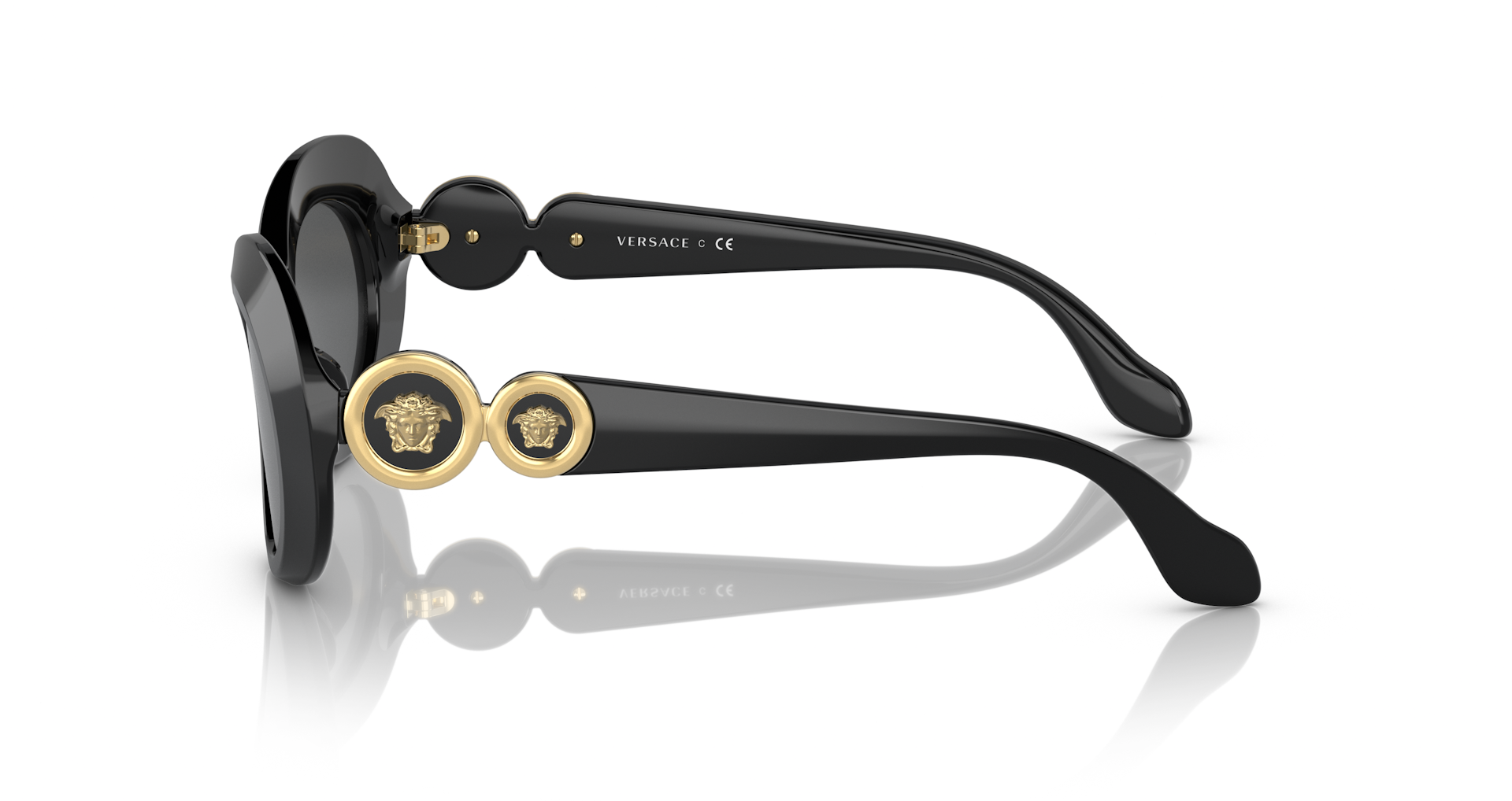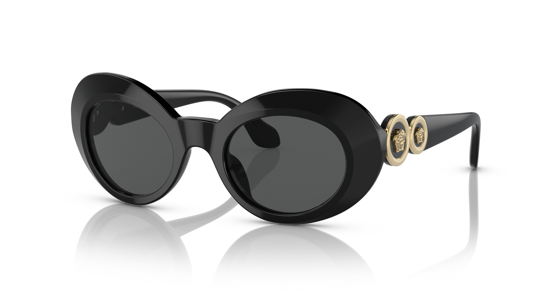 Κοκάλινος παιδικός μαύρος γυαλιστερός σκελετός με χρυσό λογότυπο στους βραχίονες σε σχήμα οβάλ και vintage στιλ με σκούρους γκρι UV400 φακούς.