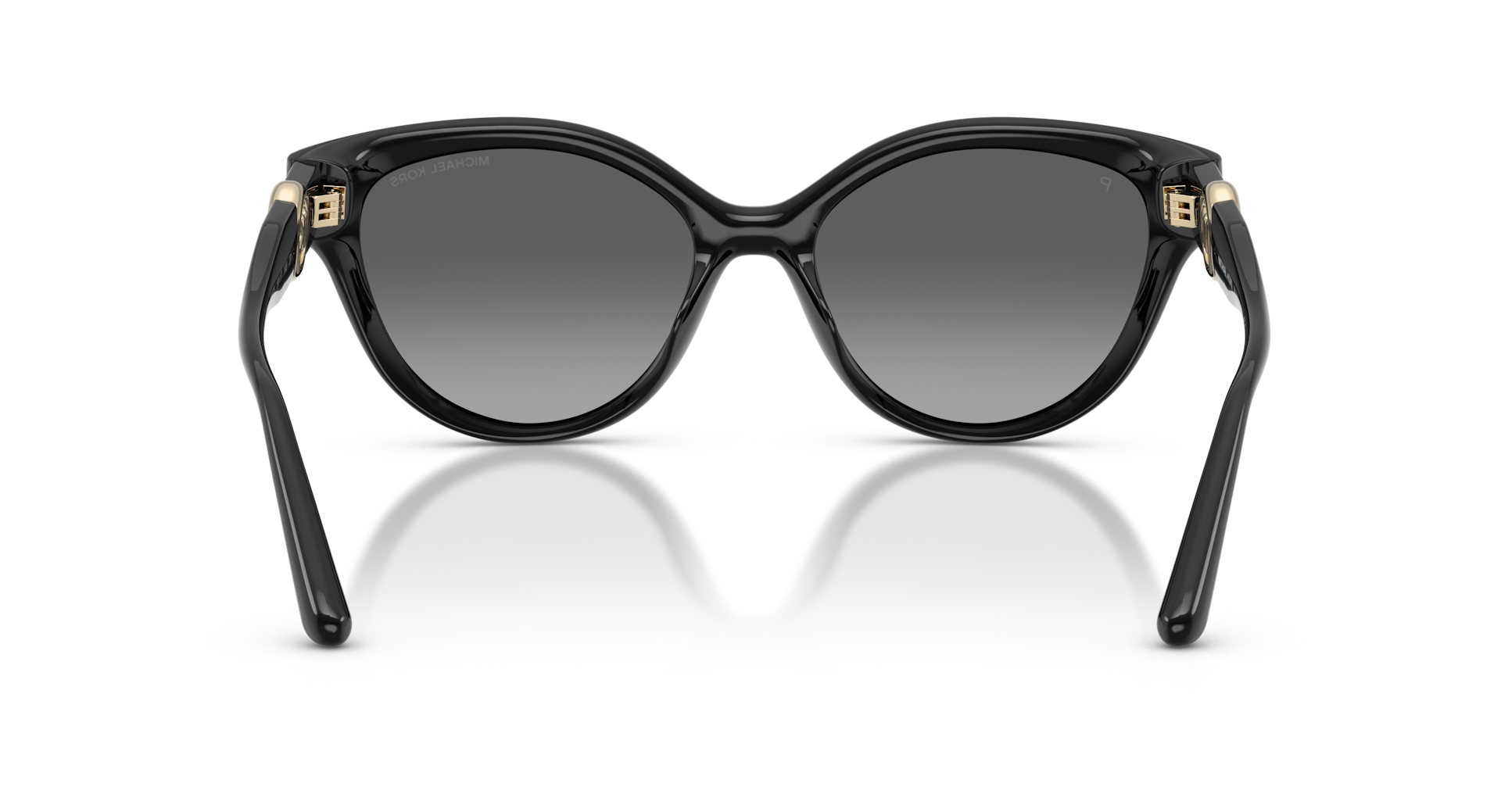 Κοκάλινος γυναικείος μαύρος γυαλιστερός σκελετός με μεταλλικό χρυσό λογότυπο στους βραχίονες σε σχήμα πεταλούδα και vintage στιλ με δίχρωμους γκρι πολωτικούς φακούς.