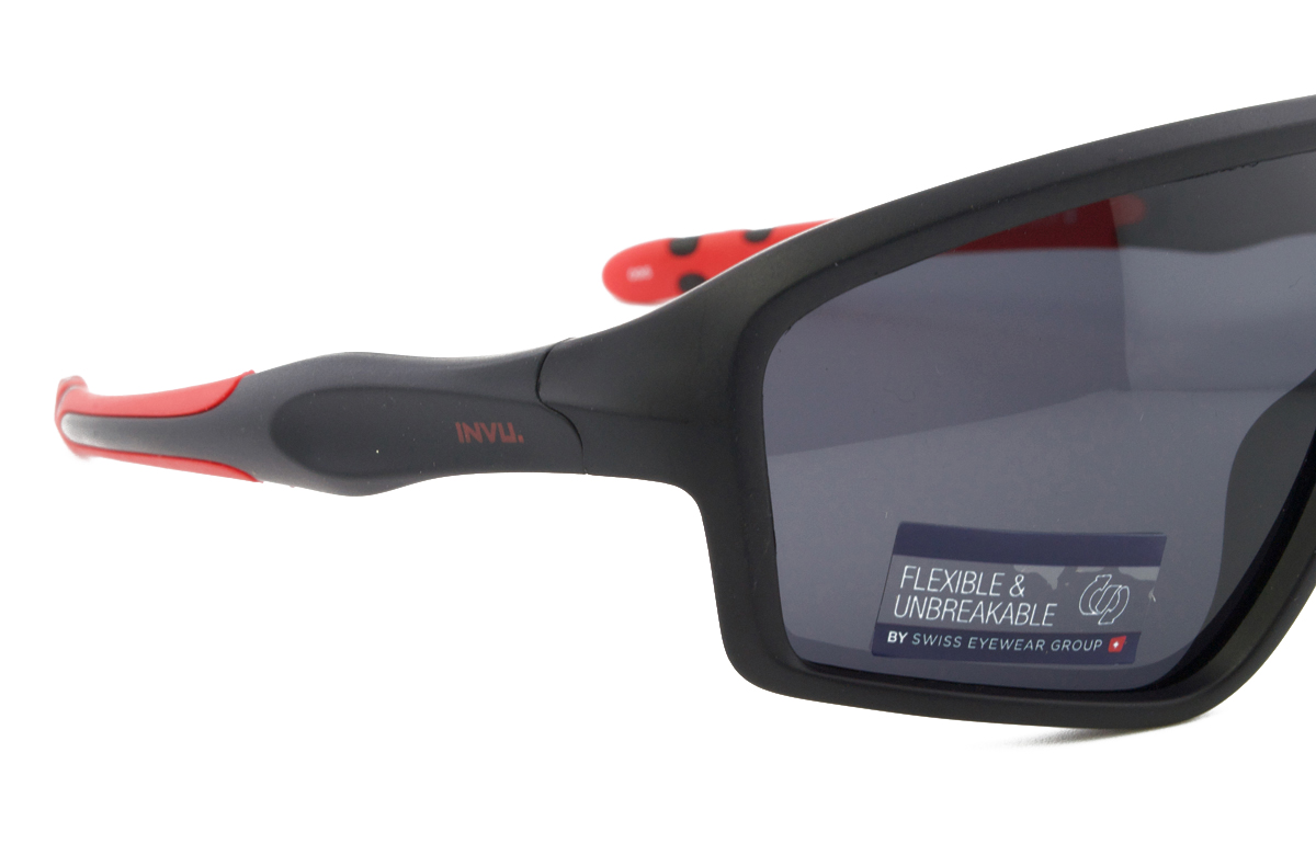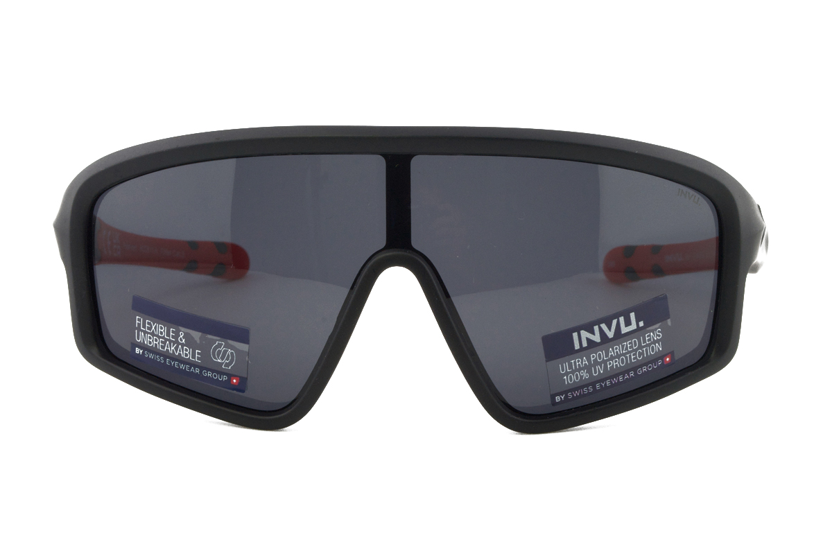 Πλαστικός tr90 παιδικός ματ μαύρος-κόκκινος μεγάλης αντοχής και ελαφρύς σκελετός σε μάσκα σχήμα και αθλητικό στιλ με σκούρο γκρι πολωτικό φακό.